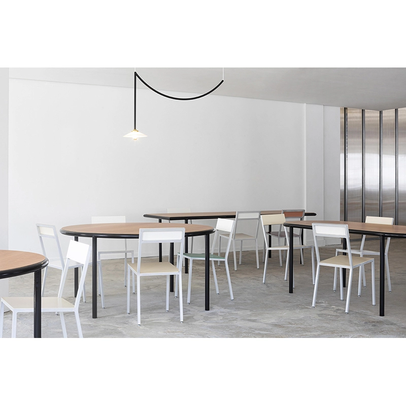 For the fifth anniversary of Valerie Objects, Muller Van Severen is surprising the world with a creation we thought would never leave their workshop: the Wooden Tables collection of wooden furniture. It's no secret that the two Dutch designers have always put wood to one side, giving pride of place to other, less familiar materials such as polyethylene, enamel and lacquer. The new Wooden Tables are a nod to the refectory tables of the 90s, still visible in schools. The frame and legs of each Wooden Table are made from rounded steel tubing, and the top from oak wood. Three different shapes are available: a simple round with two templates, a rectangular refectory and a straight version with rounded corners.