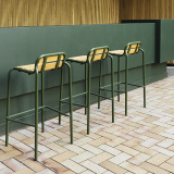 Imagined by designer Simon Legald for Normann Copenhagen, the Vig high stool is part of a collection of small armchairs, armchairs, high chairs and outdoor tables, combining minimalist, timeless aesthetics with functionality. The Vig collection features a design inspired by nature through its organic shapes and use of sustainable materials. All the furniture in the Vig collection is stackable, creating outdoor spaces that are both welcoming and flexible, thanks to a wide range of chairs, small armchairs, armchairs, high chairs, benches and tables in different sizes. Made from double powder-coated steel, the Vig high stool is designed to withstand all weathers. What's more, the seat and back of the Vig Robinia high stool are made from Robinia wood, reinforcing its strength and durability. The organic, soft lines of the Vig high stool evoke nature and the timeless upholstery colours blend harmoniously into any outdoor space. All the furniture in the Vig collection is a suitable solution for creating modular and pleasant outdoor spaces, whether on a balcony, terrace or in a garden.