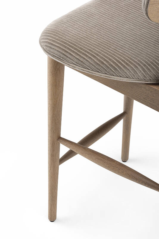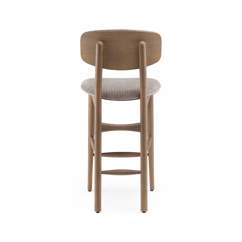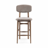 Butterfly by De La Espada is a comfortable, understated bar stool with a wooden back that recalls the wings of its namesake. With its refined upholstery on the seat and back and sturdy wooden frame, it is suitable for a variety of environments.