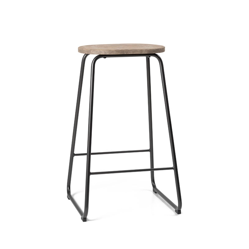 The seat is made from coffee waste from coffee producer BKI, mixed with GROHE industrial plastic waste. The technique was developed in collaboration with the Danish Technological Institute and with the support of the University of Copenhagen. The waste is mixed into a single composition suitable for press moulding. Earth perfectly represents classic Scandinavian design with a steel frame that makes the tall stool elegant and timeless.