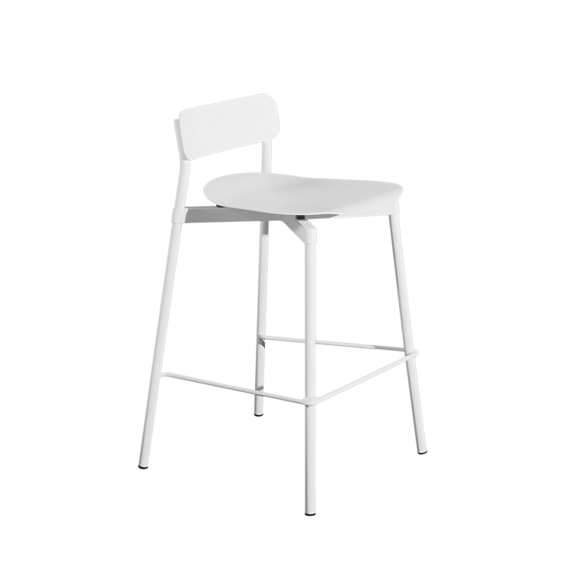 Published by Petite Friture, Fromme is a collection of metal furniture designed for the outdoors, distinguished by its clean lines and unique character. The Fromme high stool has the same technical properties as a bicycle saddle, thanks to shock absorbers under the seat. Another inspiration drawn from racing bikes: its pure, streamlined lines, common to all the pieces in the Fromme collection. Assembled from die-cast and profiled parts, and extruded tubes specially designed by Tom Chung for this collection, the Fromme high stool has a light, solid structure. Petite Friture thinks of its products in a sustainable and environmentally-friendly way, so the entire collection is made from a recyclable material, aluminium. The Fromme collection offers a number of functional advantages: comfort thanks to the slightly curved seat and shock absorbers under the seat, indoor and outdoor use thanks to the choice of aluminium construction and UV-treated matt grained paint. The Fromme high stool is water-resistant and certified for intensive outdoor use, but also looks great indoors.