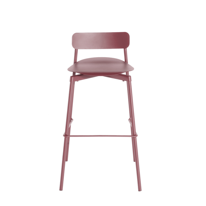 Published by Petite Friture, Fromme is a collection of metal furniture designed for the outdoors, distinguished by its clean lines and unique character. The Fromme high stool incorporates the technical properties of a bicycle saddle thanks to the shock absorbers placed under the seat. Another inspiration drawn from racing bikes: its pure, streamlined lines, common to all the pieces in the Fromme collection.