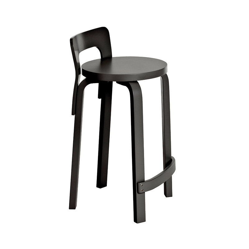 The K65 long-legged high chair by Alvar Aalto is the optimum height for high tables and bar counters. Its low backrest offers just the right amount of back support, and its curved rail serves as the perfect footrest. Created from the original system of standardised components, the K65 high chair has been serving style and essentials since the 1930s.