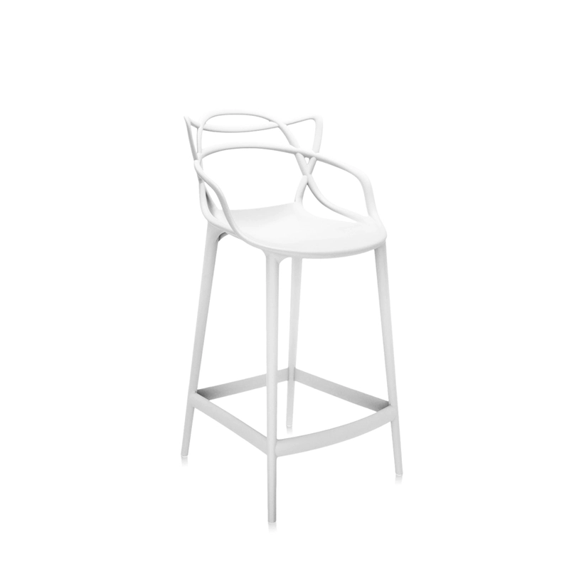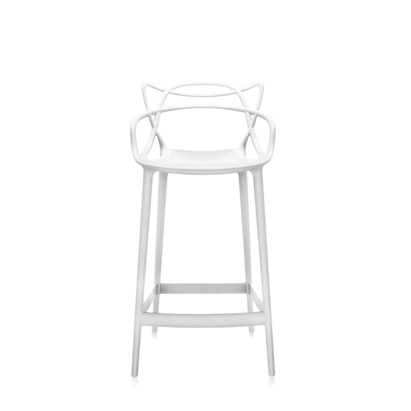 With Masters, designers Philippe Starck and Eugeni Quitllet pay tribute to three icons of contemporary design and bring to life a fusion of styles to achieve a "stylistic synthesis". Indeed, the interweaving of sinuous, dynamic lines on the back of the Masters chair, evokes the silhouettes of three contemporary design classics: Arne Jacobsen's Series 7, Eero Saarinen's Tulip Armchair and Charles Eames' Eiffel Chair. The high stool Masters has become a design icon, winning the prestigious "Good Design Award" in 2010 and "Red Dot Award" in 2013. The Masters collection is a real bestseller that comes in different colours, as a chair version and the high stool. Masters has fine lines that intertwine to form a dynamic silhouette. Made from polypropylene, the seat is original and comfortable, and comes in two seat heights: H 65 cm and H 75 cm.