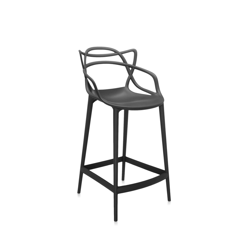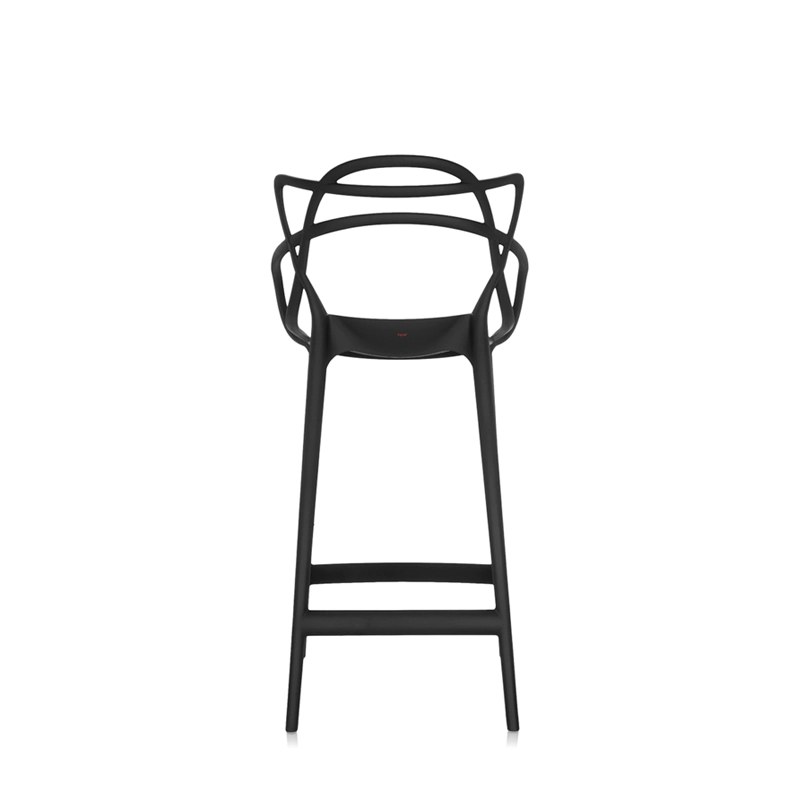 With Masters, designers Philippe Starck and Eugeni Quitllet pay tribute to three icons of contemporary design and bring to life a fusion of styles to achieve a "stylistic synthesis". Indeed, the interweaving of sinuous, dynamic lines on the back of the Masters chair, evokes the silhouettes of three contemporary design classics: Arne Jacobsen's Series 7, Eero Saarinen's Tulip Armchair and Charles Eames' Eiffel Chair. The high stool Masters has become a design icon, winning the prestigious "Good Design Award" in 2010 and "Red Dot Award" in 2013. The Masters collection is a real bestseller that comes in different colours, as a chair version and the high stool. Masters has fine lines that intertwine to form a dynamic silhouette. Made from polypropylene, the seat is original and comfortable, and comes in two seat heights: H 65 cm and H 75 cm.