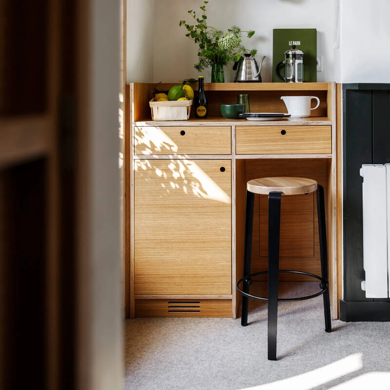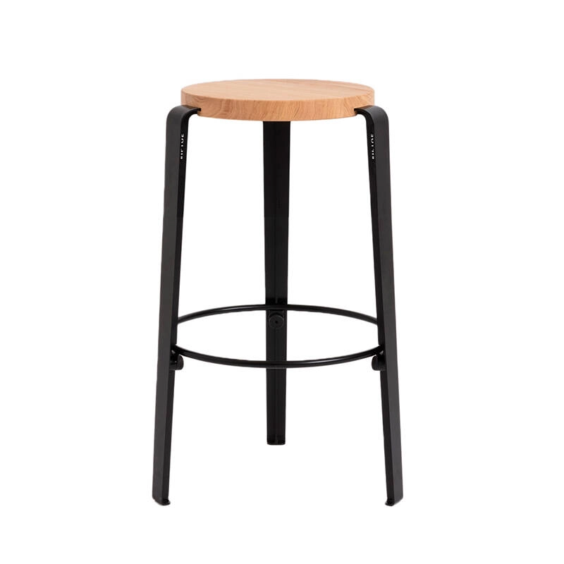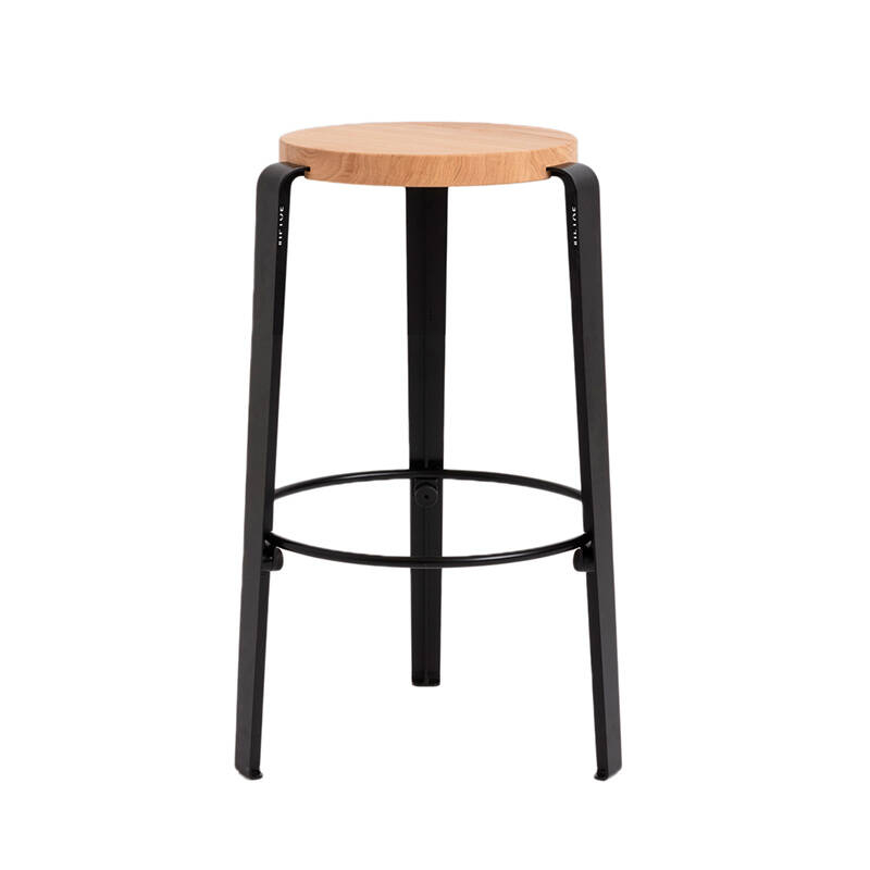 The MI LOU stool with a height of 66 cm designed by TIPTOE is a creative and versatile object for use with a classic worktop, a central island or with TIPTOE table legs for 90 cm worktops. Made in 100% Europe, the Mi Lou high stool combines clever design, easy installation and great durability. The legs are made from powder-coated steel and the seat is made from solid beech or oak. Mi Lou is also available with a recycled plastic seat. TIPTOE is a French brand rooted in a sustainable approach.