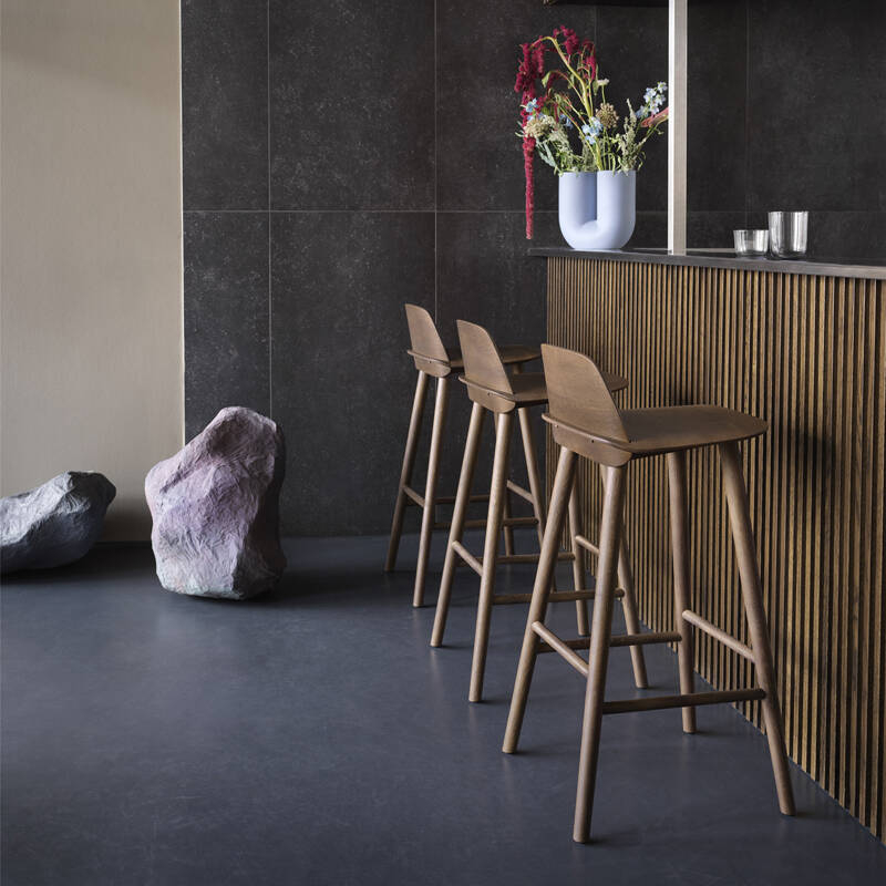 Muuto publishes the Nerd series of chairs and stools that reinterpret the strong lines of Scandinavian furniture archetypes. Designed by David Geckeler, this collection is characterised by a backrest that fits perfectly into the seat. The Danish simplicity of Muuto is bound to appeal with its relaxed, fresh take on design. The Nerd stool by Muuto combines iconic expression with modern Danish simplicity. David Geckeler's innovative combination of back and seat gives the chair a strong personality and an iconic presence. The curved shape of the seat shell and the low backrest make for a relaxed sitting position. The designer has succeeded in combining technological innovation with purity of form and material. Here, Muuto has the will to make useful and functional. This stool uses wood and traditional Danish techniques, but breaks away from tradition with a bold, modern design. The tabouret Nerd is made from solid wood or moulded veneer and lacquered in a range of colours. The chair and Nerd high stool are available in a variety of colours to match your dining room or kitchen, and whatever the model, the seat is very comfortable thanks to its studied ergonomics. The tabouret Nerd is available in two different seat heights.