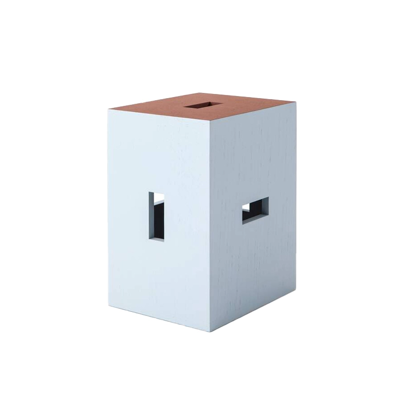 The tabouret LC14 Nantes Rezé is a simple seat designed for children's bedrooms in the Nantes Rezé Housing Unit. Made from brown and light blue lacquered solid oak, the LC14 stoolNantes Rezéwas designed by Le Corbusier and is now published by the Italian house Cassina. This piece of furniture has been designed according to the poetics of the found object dear to Le Corbusier in the latter part of his life, and now features new details compared to the variants already included in the collection LC14. It features rectangular holes in the centre of each side, making it easy to move around and adapt to your needs. It can be positioned both vertically and horizontally. The specific assembly of the wooden sides thus lends a unique look to the LC14 stool Nantes Rezé