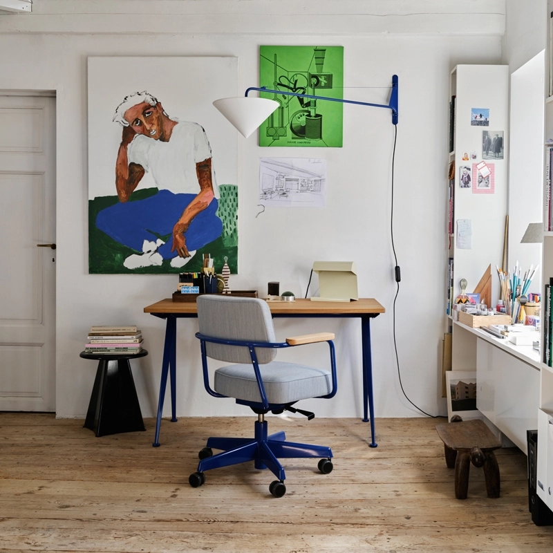 Born in Paris in 1901, Jean Prouvé apprenticed as a silversmith with Emile Robert in Enghien and Szabo in Paris, before continuing his studies at the Ecole Supérieure de Nancy. From 1923 onwards, he established himself as a builder-designer through a body of architectural and furniture work that advocated an aesthetic of necessity. In 1930, he co-founded the artists' association "Union des Artistes Modernes" (U.A.M.), and in 1931 he created "Les Ateliers Jean Prouvé". It was here that many pieces of furniture were created in the 1930s, as well as the first prefabricated architectural elements. His university furniture, Cité (1931) and Antony (1954), ingeniously manage utilitarian aspects, respect for and economy of material and the demands of mass production. For some years now, Vitra has been reissuing the finest examples of its furniture production. Among his greatest design classics is Antony, a unique armchair. The latter stands out for its surprising structure, which Jean Prouvé combined with a strikingly dynamic form. Another example is the Potence swivel wall lamp designed in 1950 for the "Tropique" house, rightly considered to be the designer's purist masterpiece.