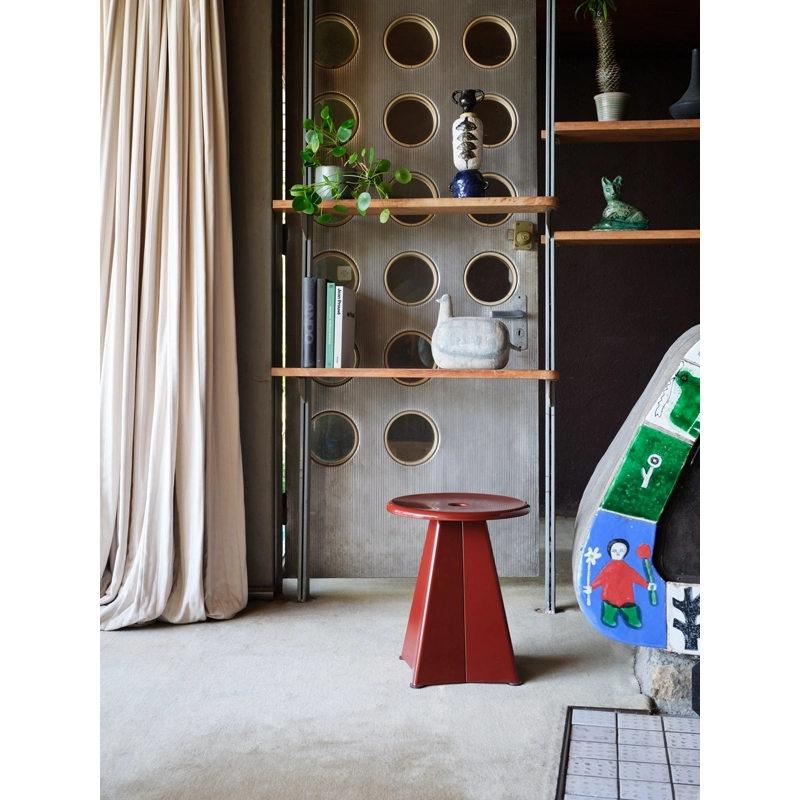The Tabouret Métallique was created by Jean Prouvé in 1936 for the Maison d'éducation surveillée de Saint-Maurice. This creation, which was developed in the workshops of Jean Prouvé, has never been produced until now. Vitra is releasing this never-before-seen model for the very first time. Tabouret Métallique is a practical stool that can also be used as a small side table and comes in a range of original Prouvé colours.