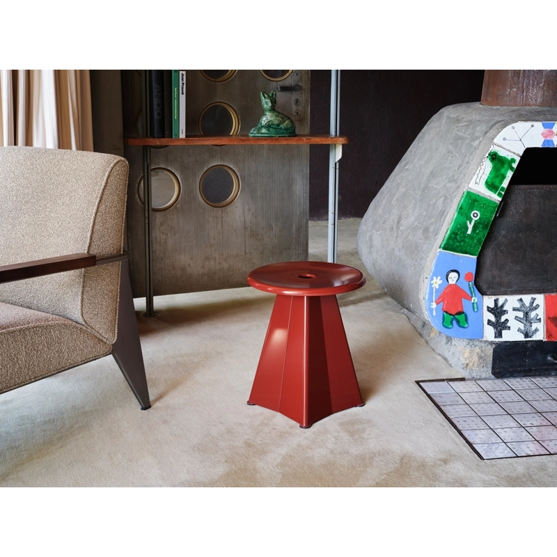 The Tabouret Métallique was created by Jean Prouvé in 1936 for the Maison d'éducation surveillée de Saint-Maurice. This creation, which was developed in the workshops of Jean Prouvé, has never been produced until now. Vitra is releasing this never-before-seen model for the very first time. Tabouret Métallique is a practical stool that can also be used as a small side table and comes in a range of original Prouvé colours.