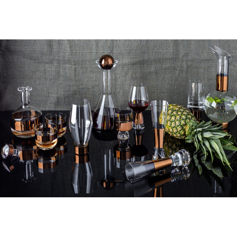 Created by Tom Dixon, Tank is a collection of table accessories that perfectly combines contemporary aesthetics and traditional techniques. Tank whisky glasses are made of mouth-blown glass and the copper details are hand-painted. Presented in a beautiful gift box, this set of two glasses brings a touch of elegance to your aperitif. A perfect gift idea for whisky lovers.