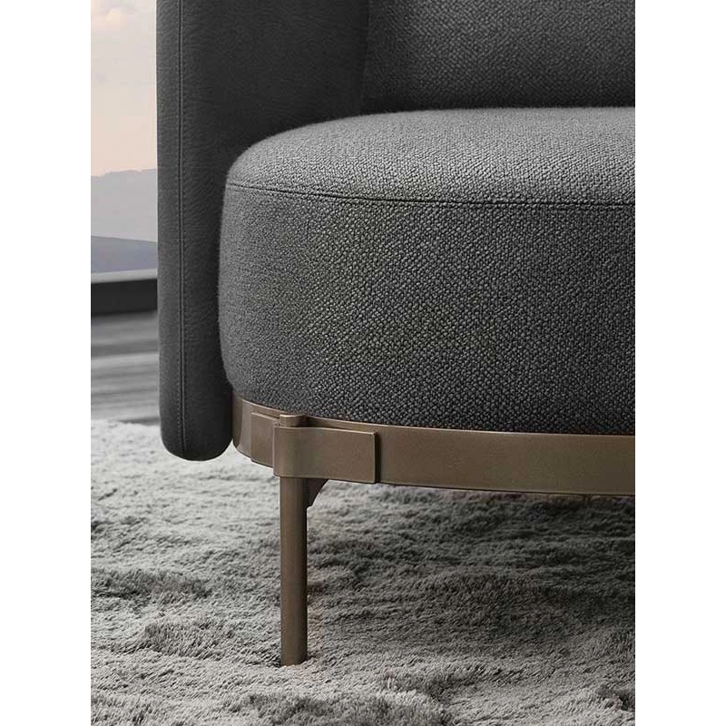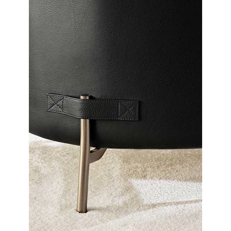 Signed by Nendo - the eclectic Japanese studio headed by Oki Sato - Tape is a collection of seating with a strong personality characterised by a light silhouette, available in a wide range of products: armchair with or without armrests, lounge chair, bergère, two- or three-seater sofa and pouffe. With his fundamentally ironic approach, the designer overturns the traditional idea of feet coming out of the chair, instead placing them on the outside the structure. Tape owes its name to the haute couture detail of the ribbons holding the Light Bronze-coloured metal feet. A declared tribute to Minotti's craftsmanship. The soft curve of the shell, which forms the armrest while accommodating the backrest cushion, gives the object its pure and enveloping line. Customisable in a wide range of leather and fabric coverings, Tape features two possible combinations: in one, the fabric covers the backrest and seat cushion, while the shell and tongue are in leather of the same colour; in the other, the textile wraps the backrest, seat cushion and entire shell, while the ribbon detail is in Light Bronze-coloured leather. With its distinctive formal identity and impeccable proportions, Tape is the protagonist of the space that welcomes it, whether at home or in a communal space.