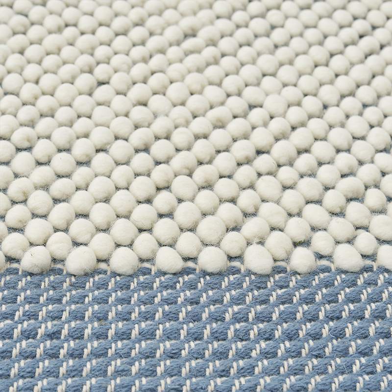 The Pebble carpetby Margrethe Odgaardfor Muuto plays on the contrast of materials for a vibrant and sophisticated expression, coupled with a modern colour palette. Featuring a jute-fibre body, the pebble carpet gets its name from the fluffy wool curls that give the sensation of walking on a pebble beach, as you pass over the carpet barefoot. With its wool curls, Pebble has an expression that is both graphic and illustrative, enhanced by the rounded corners. Published by Muuto, the rug is handwoven and made in India from 100% New Zealand wool. The structure of the Pebble rug is made from jute canvas.