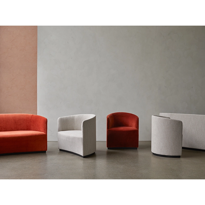 Menu, these seats offer a welcoming refuge and work beautifully together. The armchair and sofa demonstrate the great potential of working with simple geometric shapes. This collection is suitable for a wide range of applications, from hotels and restaurants to domestic environments. Combining a luxurious look with its upholstery and a sleek silhouette created from geometric shapes, the