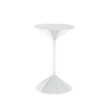 Designed by Prospero Rasulo in 2001, the Tempo collection of small coffee tables is characterised by two polyurethane cones joined by a steel rod. Produced by Zanotta, these side tables are distinguished by light, graphic lines. These very practical tables can be used either in a living room as side tables or in a bedroom.