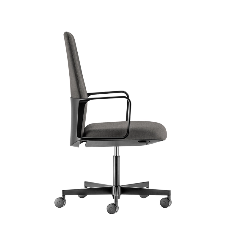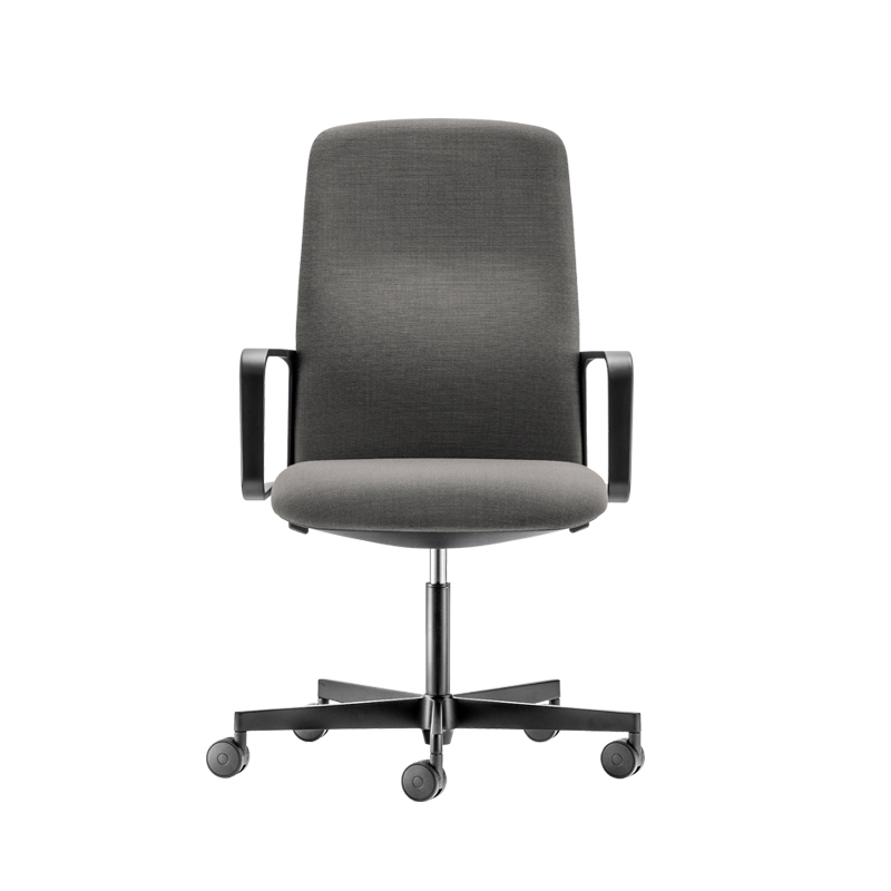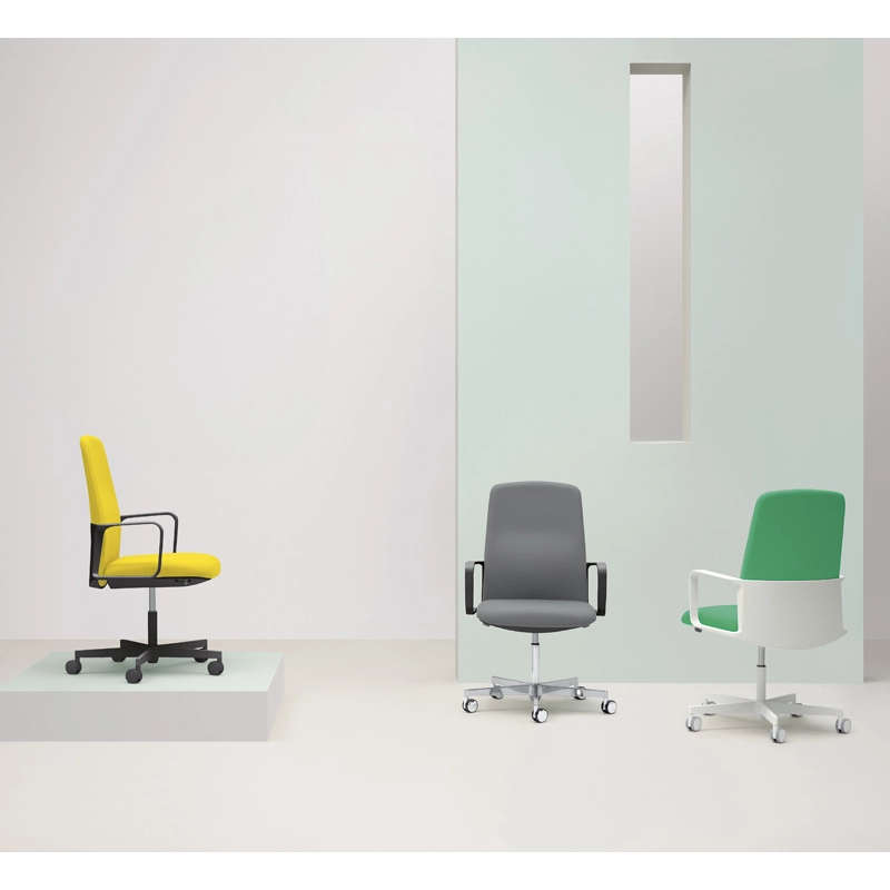 Time hiding the mechanism and surrounds the backrest near the lumbar region, establishing continuity between the upholstered material and the plastic. Available in a range of colours and fabrics, this