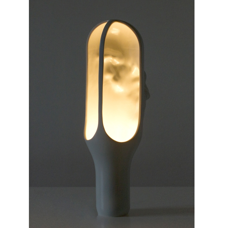 A true light sculpture, The Cave is a table lamp created by the young designer Benjamin Graindorge for Moustache. Atypical and imaginative, The Cave is made of glazed ceramic, and is halfway between art and design. The different reliefs give the impression that there is a cave inside and the light accentuates the different organic moulded shapes. When switched off, The Cave displays a sculptural appearance, when on, it reveals itself in a different way, playing with solid shapes and empty spaces on the living-room sideboard.