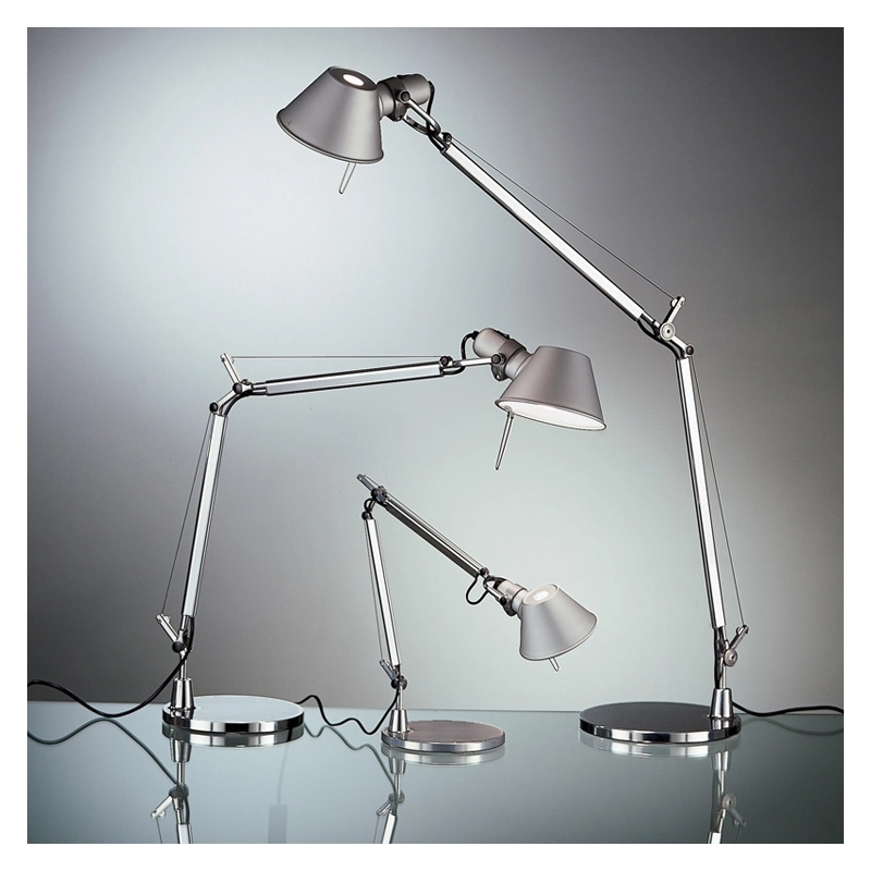 Designed in 1987, the Tolomeo Tavolo desk lamp is the first in a series of lighting solutions created by Michele de Lucchi and Giancarlo Fassina for Artemide. It features a polished aluminium articulated arm structure. When fully unfolded, the Tolomeo table lamp can reach a height of up to 130cm. A spring balancing system enables articulation. Ball joints and brackets are made of polished aluminium. The anodised aluminium diffuser can be swivelled in all directions. Tolomeo has become THE desk lamp par excellence and a contemporary design icon. Tolomeo is now available in a smaller size: the Tolomeo Micro, available as a wall light, reading light, and floor lamp. Lightweight, elegant, and very stable thanks to its cast iron base, the powerful light it provides is sure to amaze you.