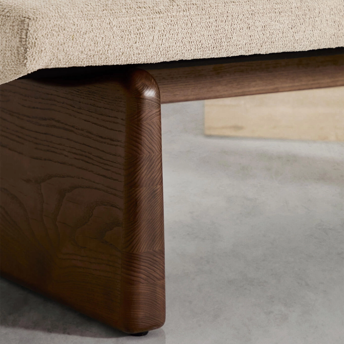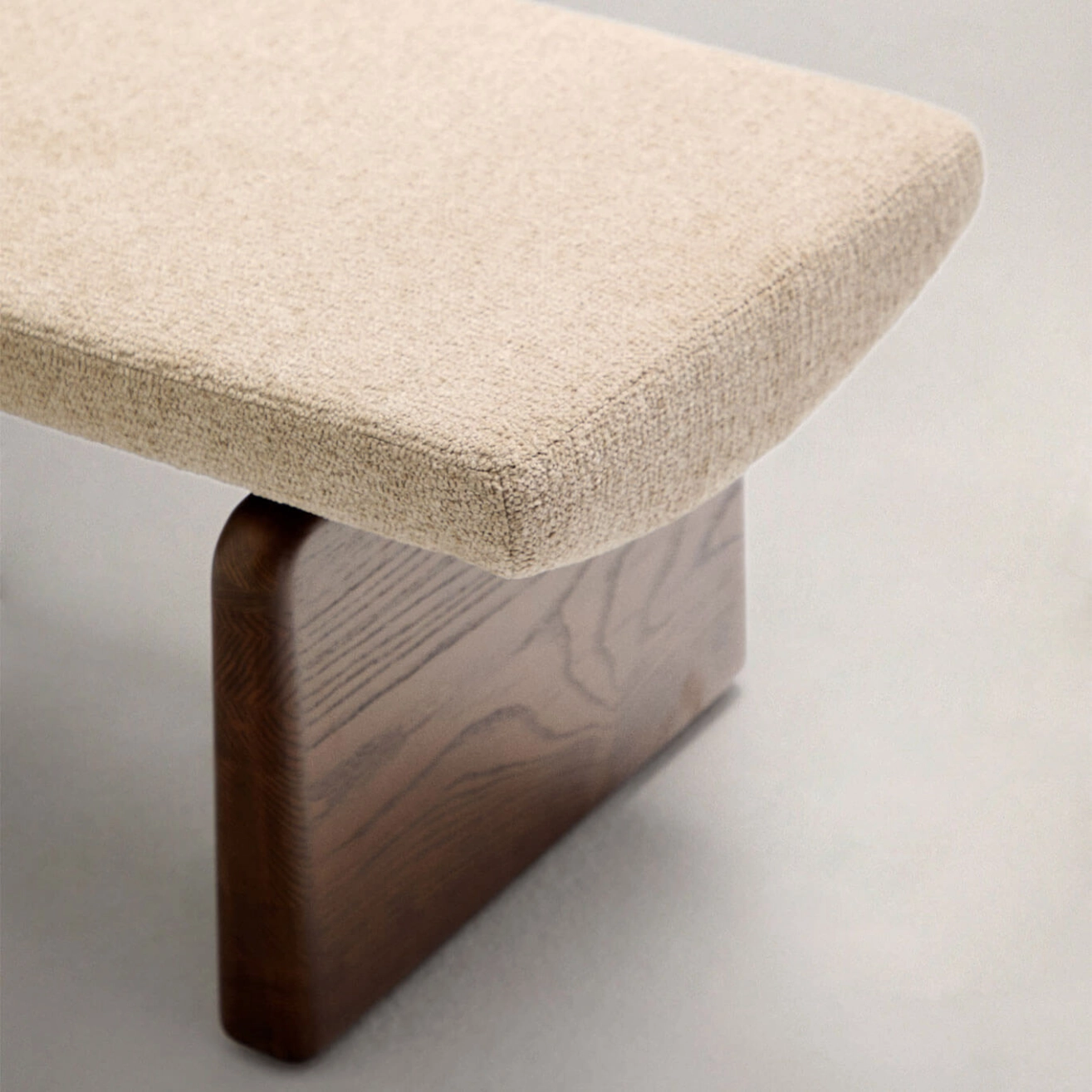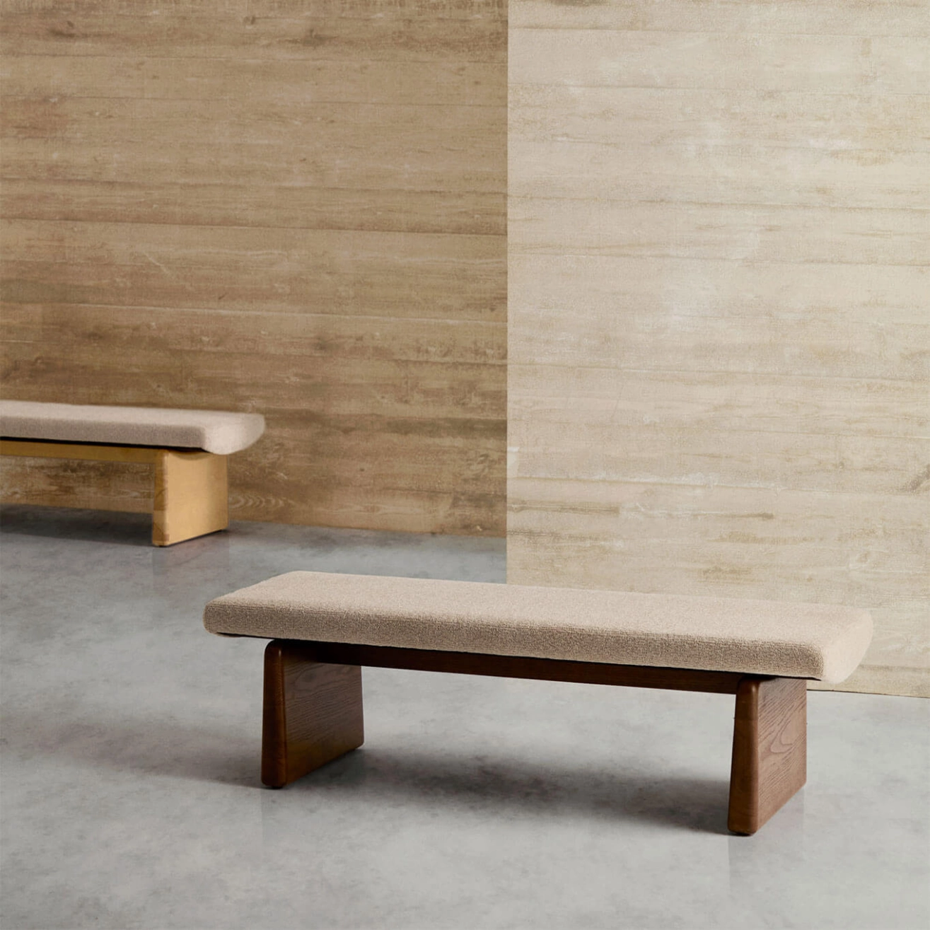 bench blends durability, style, and responsible design. Its medium-firm seat offers excellent comfort for moments of rest or waiting. The ash wood frame is available in either a natural or walnut finish, both of which highlight the natural grain of the wood and add warmth and refinement to any space. The wood is FSC 100% certified, ensuring it comes from responsibly and sustainably managed forests. The