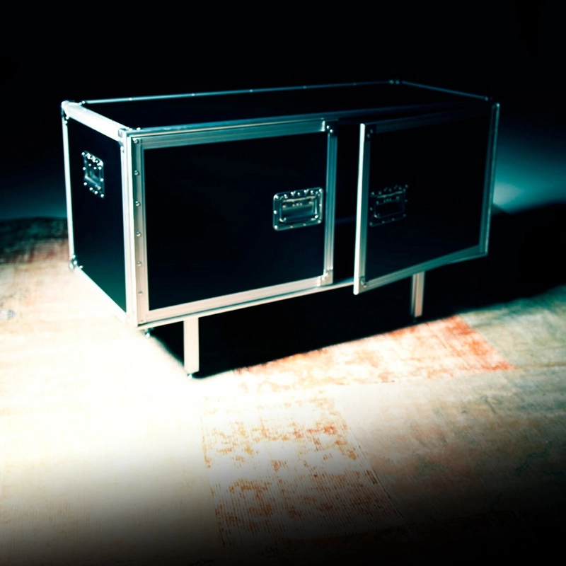 By teaming up with famous fashion house Diesel, Moroso has developed a line of furniture with a relaxed style, aimed at individuals who appreciate simple yet casual shapes without wanting to sacrifice comfort or quality. This piece is featured in two collections: Camp and Rock. The first one is inspired by Nature and features soft and comfortable forms, the second draws inspiration from the world of Rock music and its identity-based idioms.Total Flighcase storage solution is inspired by the crates used by musicians to transport their instruments. The large model has two side openings and a central flap opening, while the small model has two side openings. Total Flightcase is ideal for infusing rock-inspired, industrial and offbeat style into your living room, office or bedroom.