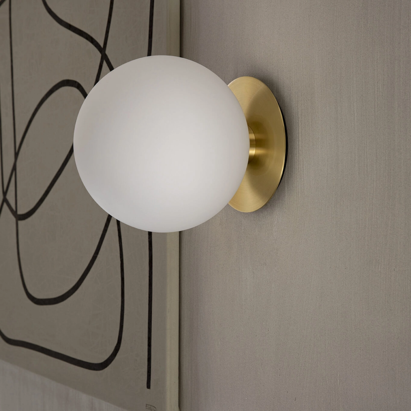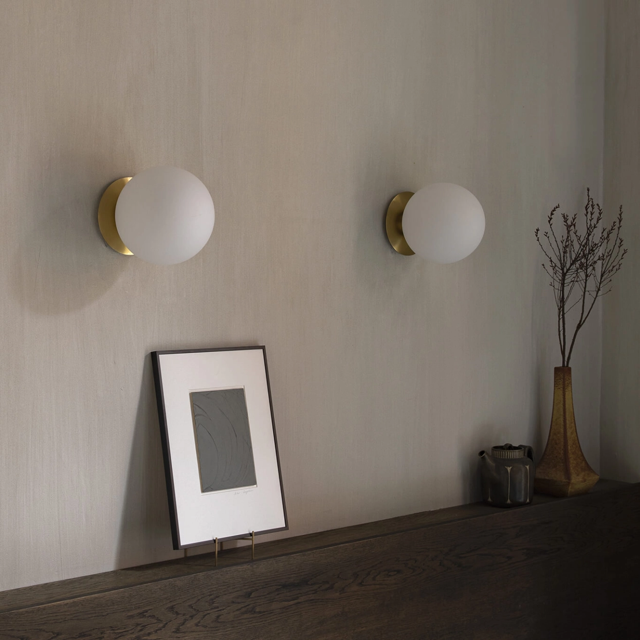 With its minimalist aesthetic and refined luminous expression, the TR Bulb Ceiling/Wall Lamp Brass by Audo Copenhagen embodies the subtle balance between functional design and architectural presence. Thought as a lighting element both discreet and expressive, it combines a delicately brushed brass base with an opal glass globe that diffuses a soft, warm and homogeneous light. This harmony of materials gives the lamp a timeless elegance, able to integrate naturally into contemporary interiors while bringing a sophisticated note. In a living room, a bedroom, a hallway or an office, but also in hotel projects, catering or reception spaces, the TR Bulb adapts to different uses, being able to be installed as well on the wall as on the ceiling to structure the lighting with subtlety. Used alone to punctuate a focal point or repeated in composition to give rhythm to a volume, it becomes a real light staging tool that enhances the surrounding volumes and materials. Its design, faithful to the approach of Audo Copenhagen, favors a formal simplicity and a durable functionality, where each detail responds to a precise use. The TR Bulb Ceiling/Wall Lamp Brass is thus distinguished by its design inspired by Nordic design, by the quality of its soft and enveloping light, by its ability to be installed on the wall or ceiling according to the project and by a refined aesthetic that enriches both residential spaces as well as professional environments.