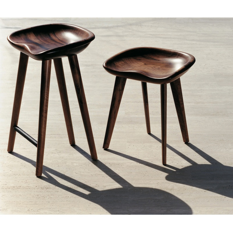 The design duo behind the BassamFellows brand were inspired by a Swiss tractor seat to carve the Tractor Stool series out of solid wood. High or low, these stools combine an ergonomic shape to ensure a comfortable seat with the sensuality of wood worked by a cabinetmaker. Solid wood forms a fine patina over time, so these products will last for generations without losing their character or visual appeal. Each model is unique and the finishes preserve the natural beauty of the wood. Tractor Stool is available in different seat heights: the low stool is perfect in a child's bedroom and the taller versions can fit under the kitchen bar. Lightweight and comfortable, these Tractor Stool from BassamFellows bring a touch of naturalness, softness and refinement with that raw look of wood and the different shades of colour it brings.