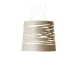 Created by Marc Sadler, this pendant lamp is made of lacquered fibreglass-based composite material. Produced by Foscarini, this lamp is made by interlacing ribbons and resin in an irregular fashion to create a structure as well as a decorative and protective element, creating a totally unique lighting effect that incorporates solids and voids, shadow, and light. The thread embedded in the interlacing of the structure creates a pure and refined aesthetic effect. Tress is also available in black or white, and as a floor lamp.
