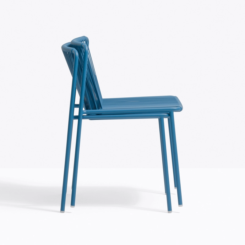 Edited by Pedrali, Tribeca is a modern reinterpretation of classic 60s terrace chairs in interlaced steel. The Tribeca chair features a Ø20mm tube frame painted for outdoor use. The back and seat are created from an interlacing of PVC thread reinforced with nylon. The technique and materials used have made it possible to provide a chair that is both comfortable and light. Available with or without armrests, the Tribeca stacking chairs are specially designed for outdoor use.