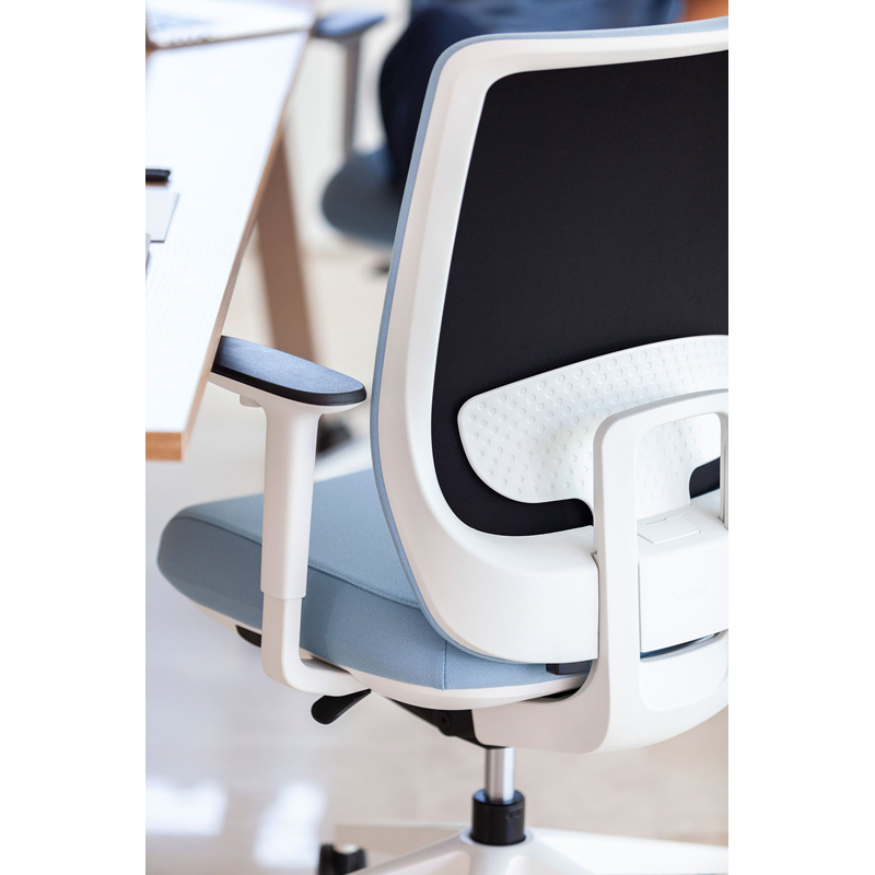 Designed by Alegre Design for Actiu, Trim is a task chair created to take care of people, enhancing their well-being and offering a high performance backrest. This seat offers a wide range of customisation options and has a height-adjustable backrest, enhancing its comfort. Trim is a versatile, ergonomic and flexible product that helps users feel good and be more productive. It takes care of the back and the comfort of the body thanks to a design capable of adapting to any type of space. The Trim office chair perfectly combines technological performance with great adaptability.