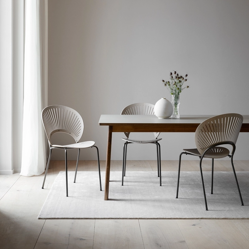 Designed by Nanna Ditzel, Trinidad is an elegant, sculptural chair, published by Fredericia. When it was introduced in 1993, this chair was an immediate hit for both public and domestic spaces, and soon became an iconic design piece. Trinidad stands out for the innovative techniques used to create a chair that is as light as it is robust. The cut-outs in the seat and backrest make the chair visually lighter but are also an important aesthetic element. The moulded plywood seat and backrest are combined with a sleek tubular-steel base. The Trinidad chair is available in several versions, contact us for more information.