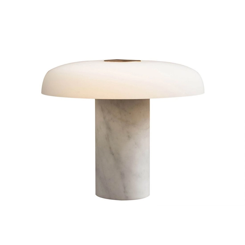 The "shape of light" is the central theme of Gabriele and Oscar Buratti's Tropico project for Fontana Arte. The shape of glass and metal collects, contains and diffuses light into the space. As you pass through the layers of opal, highlighted by refined curves and the magic of blown glass, light is free to create surprising and fascinating effects, patterns and atmospheres. Tropico features a spherical diffuser in matt opaline glass, set on an imposing marble base. Available in different versions, the Tropico family stands out for the quality of its materials and the elegance of its shapes.