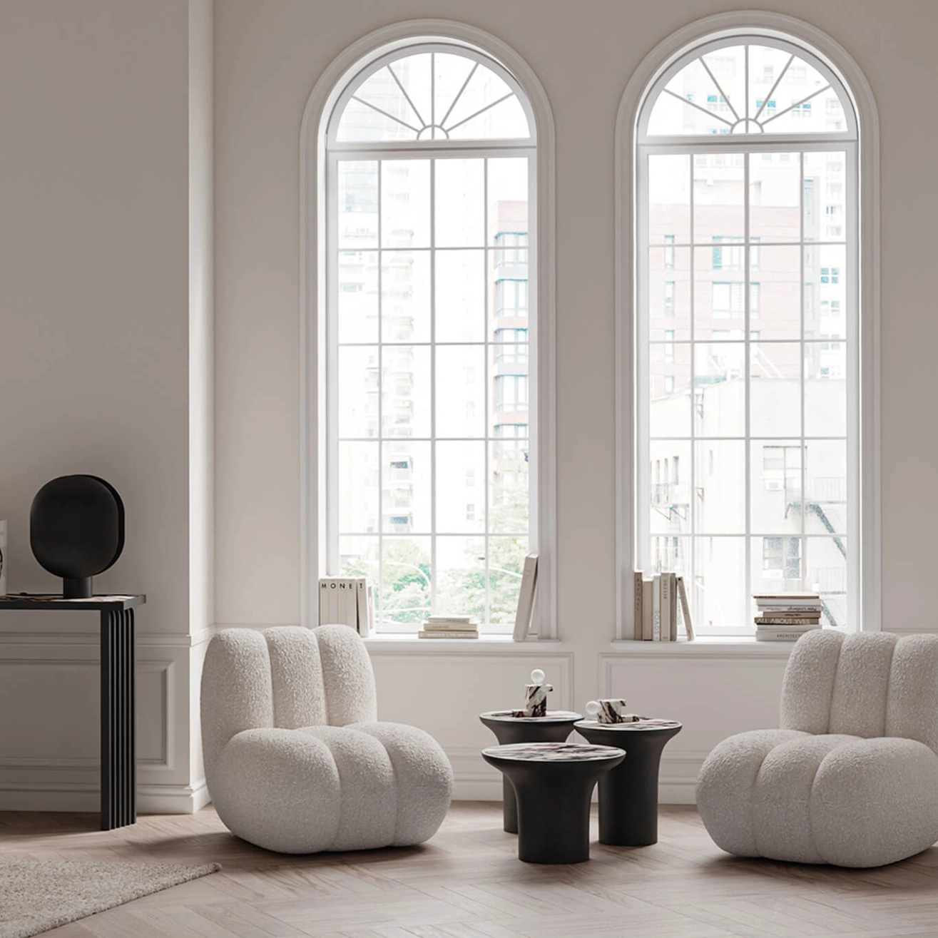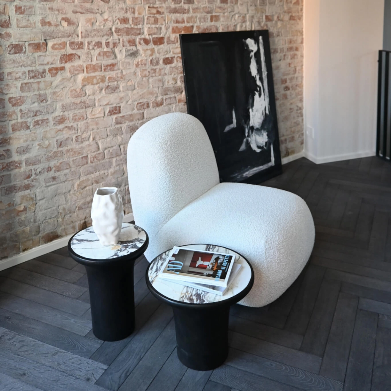 The Trumpet side table by 101 Copenhagen stands out with its iconic trumpet-shaped silhouette, giving it both elegance and character. Designed by Kristian Sofus Hansen and Tommy Hyldahl, Trumpet features a marble top and a concrete structure, offering a light, contemporary look while highlighting its sculptural base. Its harmonious proportions create a perfect balance between graphic presence and practical functionality. Thanks to its versatile design, Trumpet fits seamlessly into a modern living room, bedroom, or workspace, adding a touch of discreet and timeless sophistication. With this piece, 101 Copenhagen once again showcases its expertise in creating refined, sculptural, and resolutely contemporary furniture.