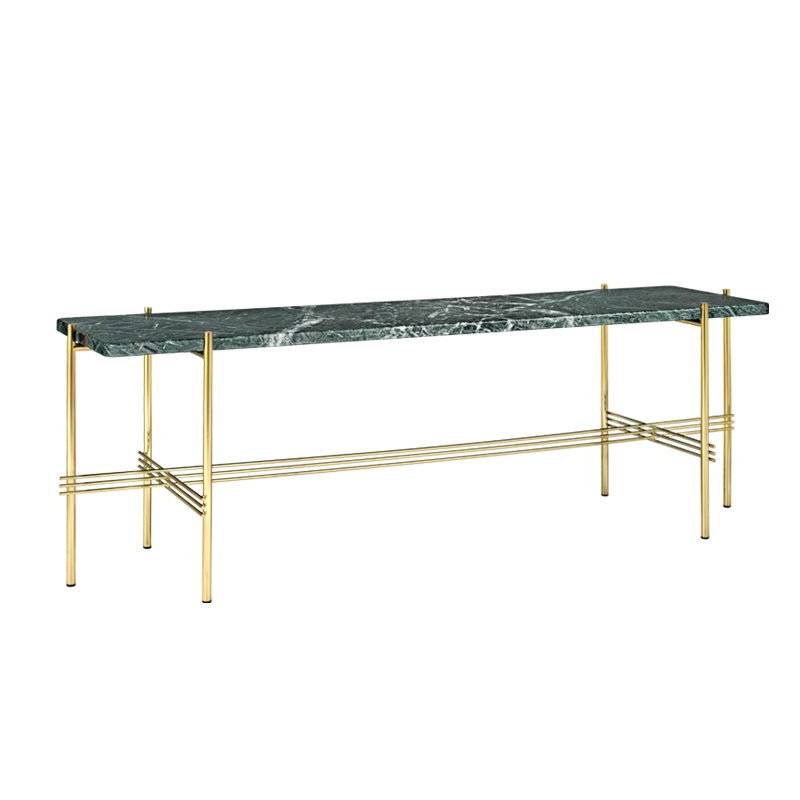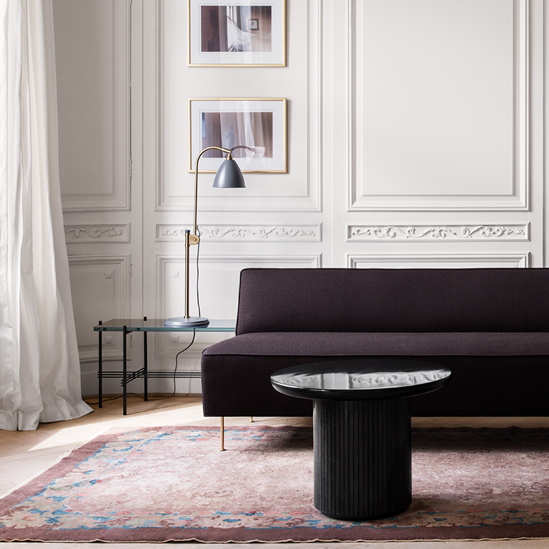 The collaboration between the GamFratesi studio and the Gubi brand embodies the convergence of Italian design and Danish inspiration. The minimalist approach and the traditional craftsmanship of the Scandinavian countries are combined with a strong and emotional concept. GamFratesi plays on contrasts of materials and shapes with a marble or coloured glass top resting on a thin black or brass metal base. Graphic and elegant, the Gubi TS console brings a touch of elegance to a living room or hallway. The TS collection is also available as a coffee table, pedestal table, dining table and desk.