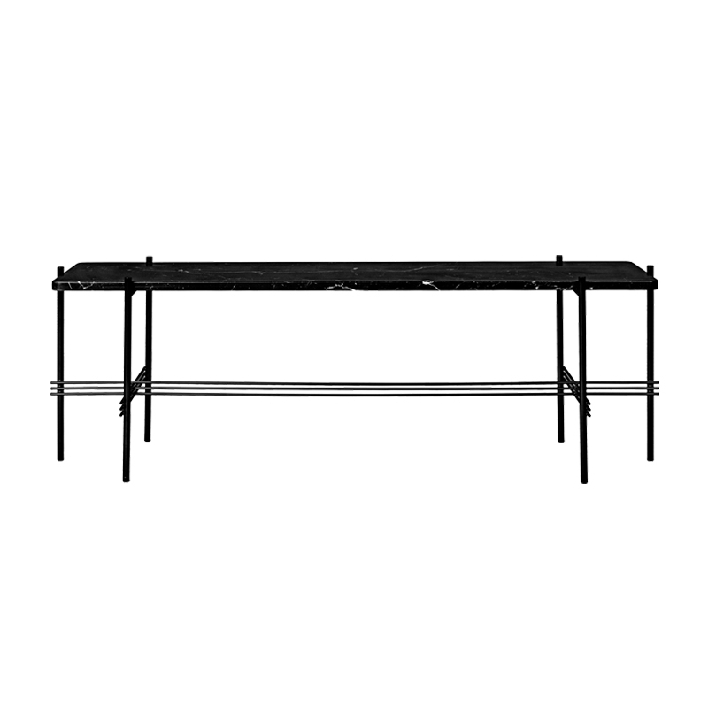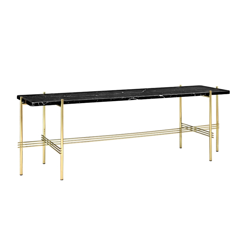 The collaboration between the GamFratesi studio and the Gubi brand embodies the convergence of Italian design and Danish inspiration. The minimalist approach and the traditional craftsmanship of the Scandinavian countries are combined with a strong and emotional concept. GamFratesi plays on contrasts of materials and shapes with a marble or coloured glass top resting on a thin black or brass metal base. Graphic and elegant, the Gubi TS console brings a touch of elegance to a living room or hallway. The TS collection is also available as a coffee table, pedestal table, dining table and desk.