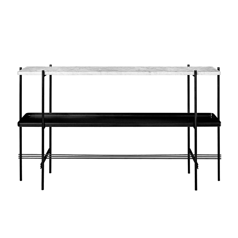 The collaboration between the GamFratesi studio and the Gubi brand embodies the meeting of Italian design and Danish inspiration. The minimalist approach and the traditional craftsmanship of the Scandinavian countries are combined with a strong and emotional concept. GamFratesi plays on contrasts of materials and shapes with a marble or coloured glass top resting on a thin black or brass metal base. Graphic and elegant, the TS console from Gubi brings a touch of elegance to a living room or hallway. The TS collection is also available as a coffee table, pedestal table, dining table and desk.