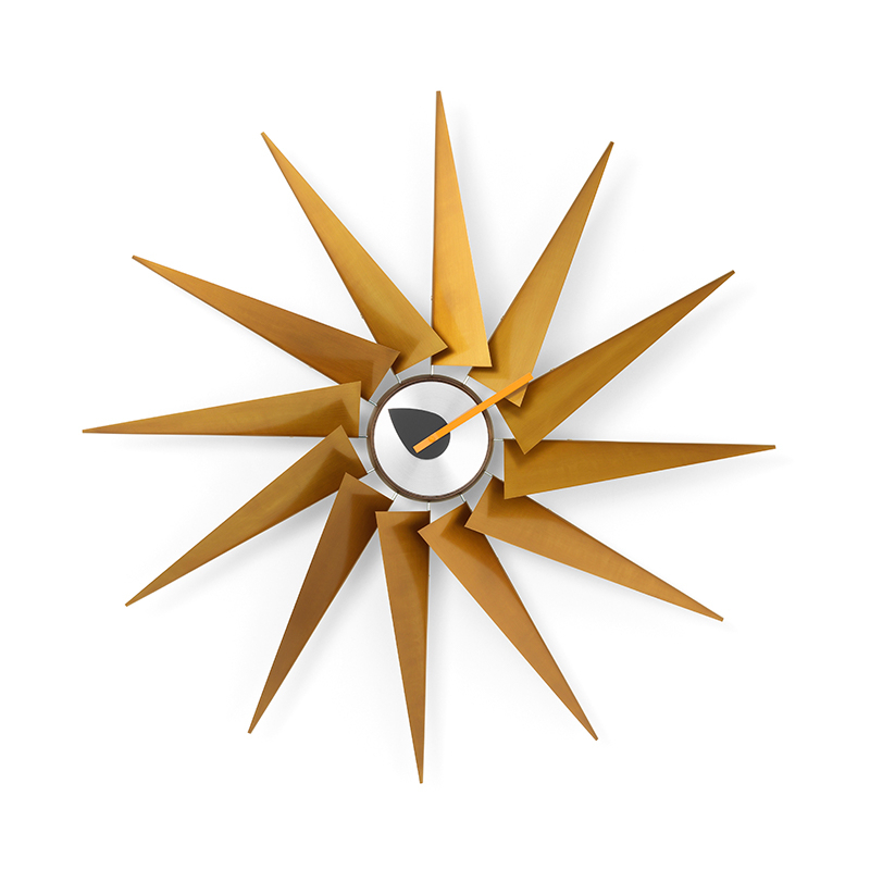 Characterised by their diversity of materials and their sculptural shapes, the clocks created by George Nelson for Vitra epitomise the spirit of 1950s design. These wall clocks represent a fresh alternative to the usual time-keeping objects. These pieces are part of the collection of the Vitra Design Museum, and have become design classics, indispensable for the home. Nelson clocks are equipped with a high-quality quartz mechanism (1.5 V battery included) and are made of different types of wood and metal depending on the model. The Sunburst model takes the form of a sundial, the Ball Clock uses natural wooden balls to represent the hours and minutes, while the birch Sunflower clock takes the geometric shape of a flower, like an unfolded paper origami pattern. Each of the clocks in this series is sure to look right at home on your kitchen, bedroom or bathroom wall. These original clocks are ideal gifts for loved ones, or yourself!