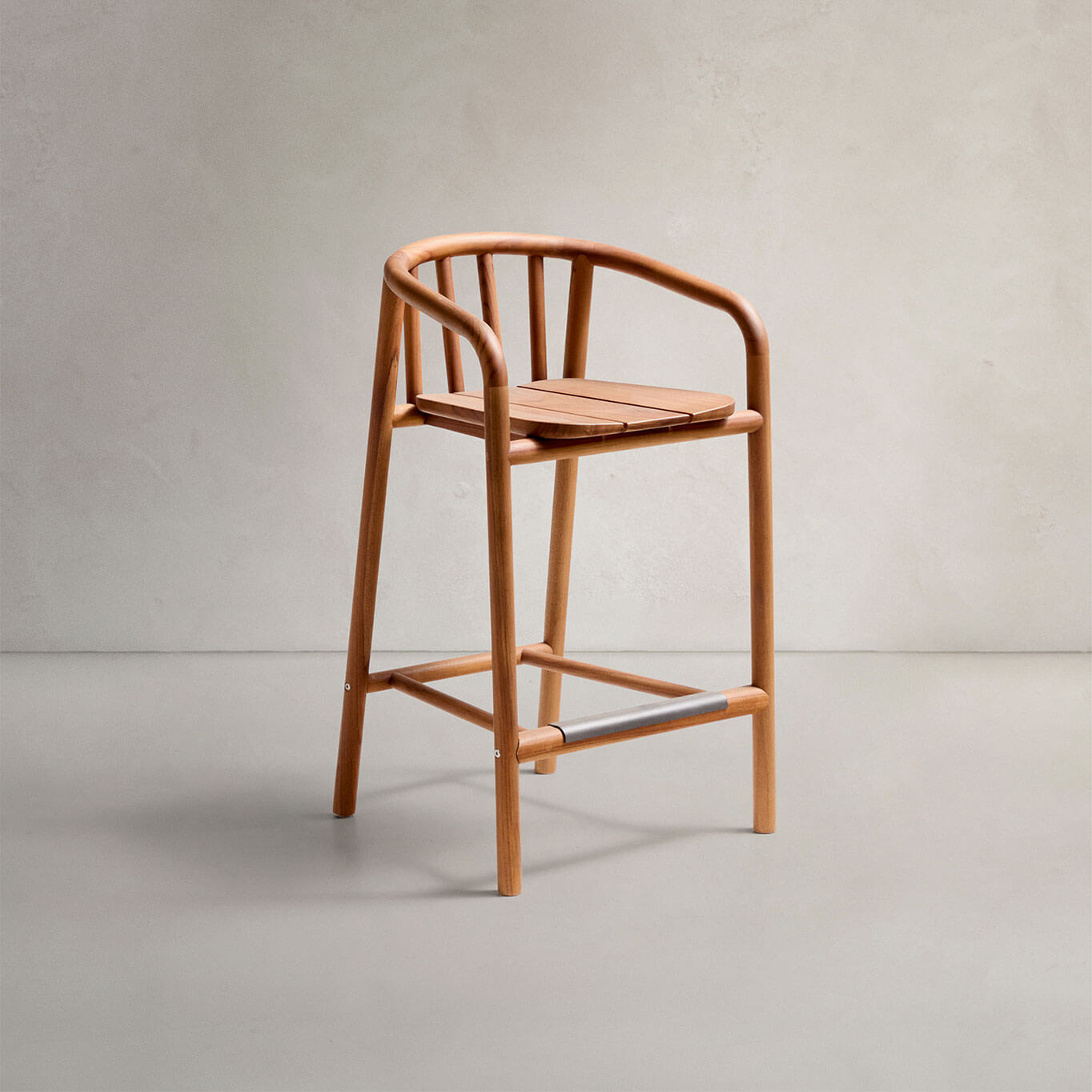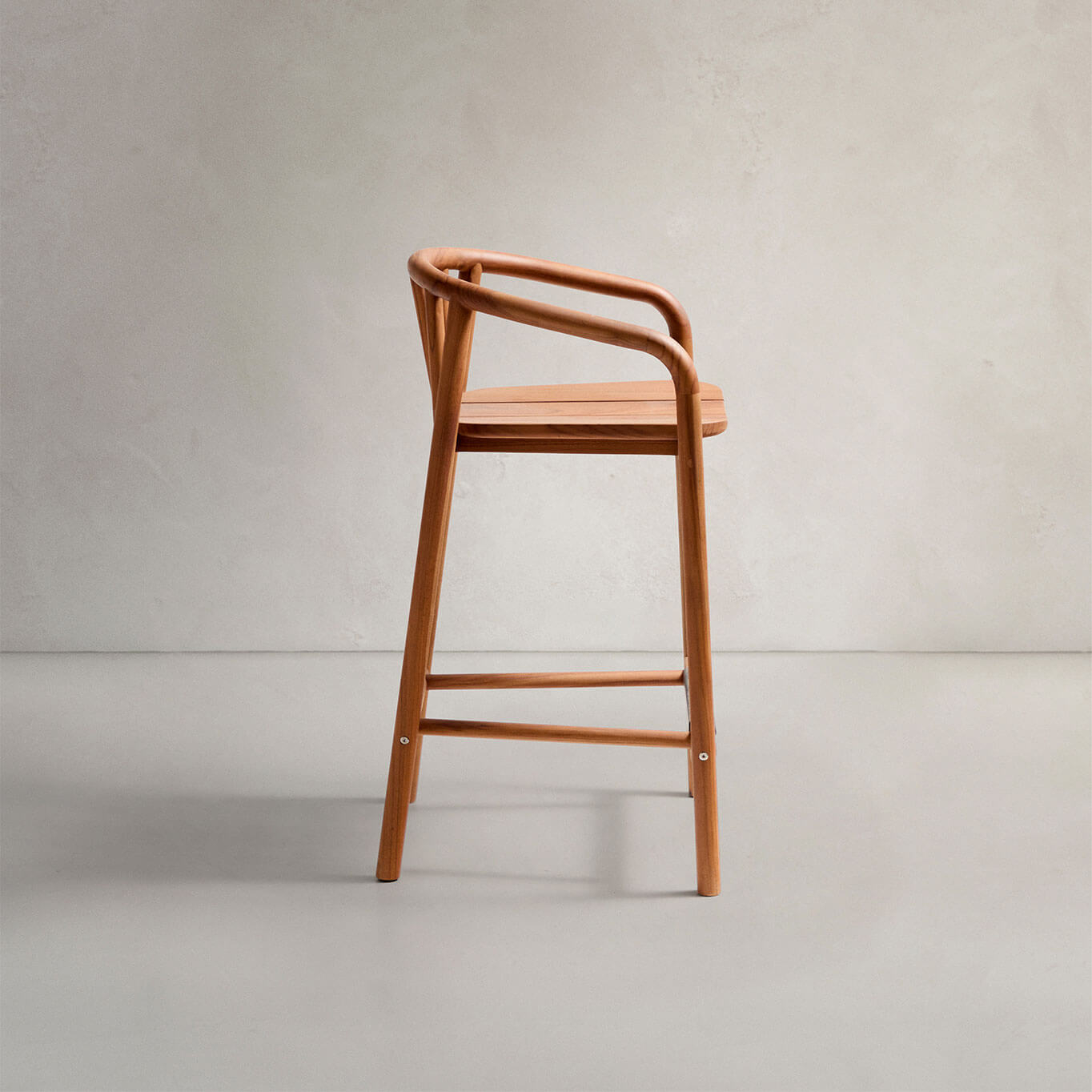 Kave Home combines contemporary design with natural sturdiness. Crafted from solid teak wood, FSC 100% certified, it offers durability and resilience, while bringing a touch of warm elegance to both indoor and outdoor spaces. With a height of 65 cm and its pronounced horizontal structure, the Turqueta stool conveys comfort and serenity, inviting relaxation and social interaction. The Turqueta collection, exclusively designed by Made Studio for Kave Home, stands out for its clean, contemporary lines and the meticulous craftsmanship of its textile elements. Every detail reflects a perfect balance between visual lightness and solidity, delivering furniture that is both aesthetic, functional, and unmistakably modern.