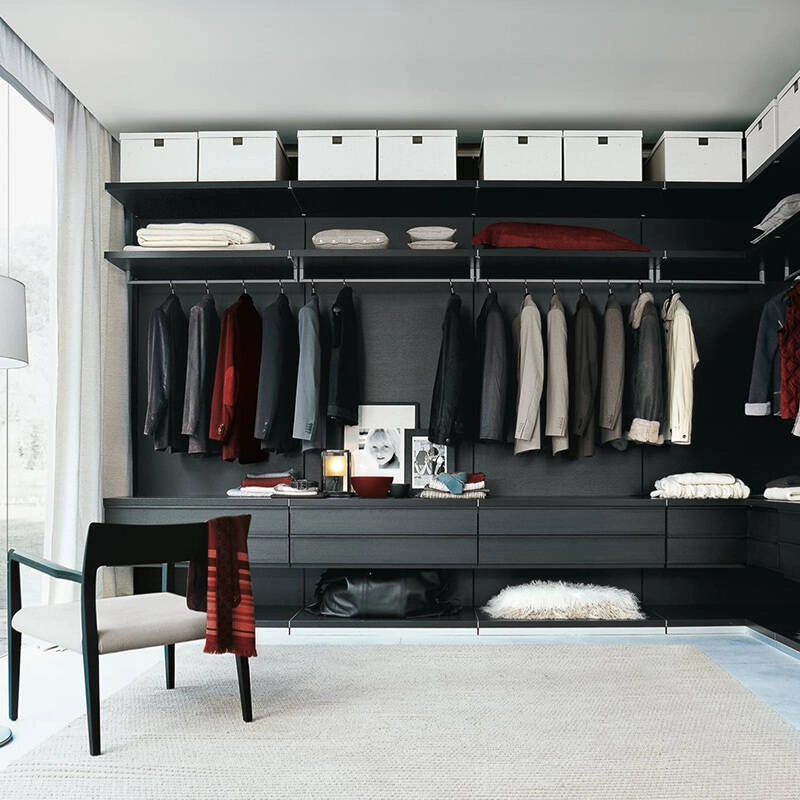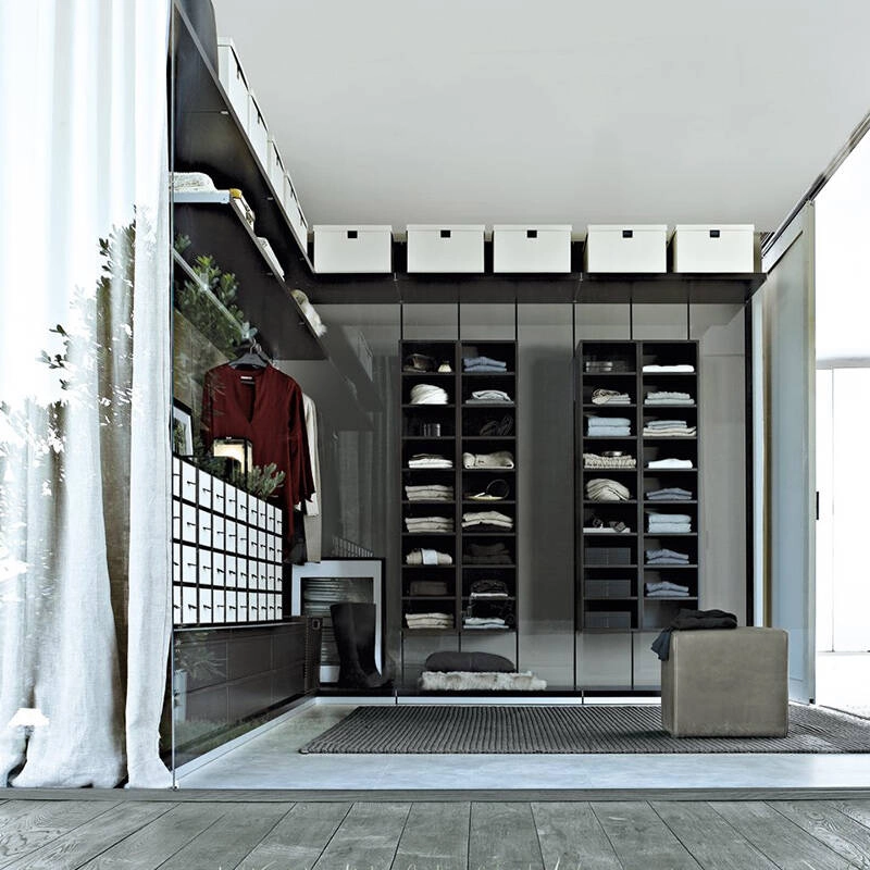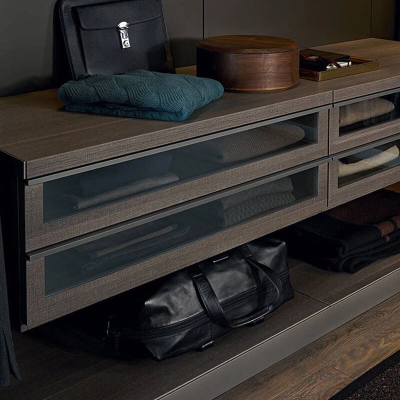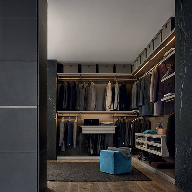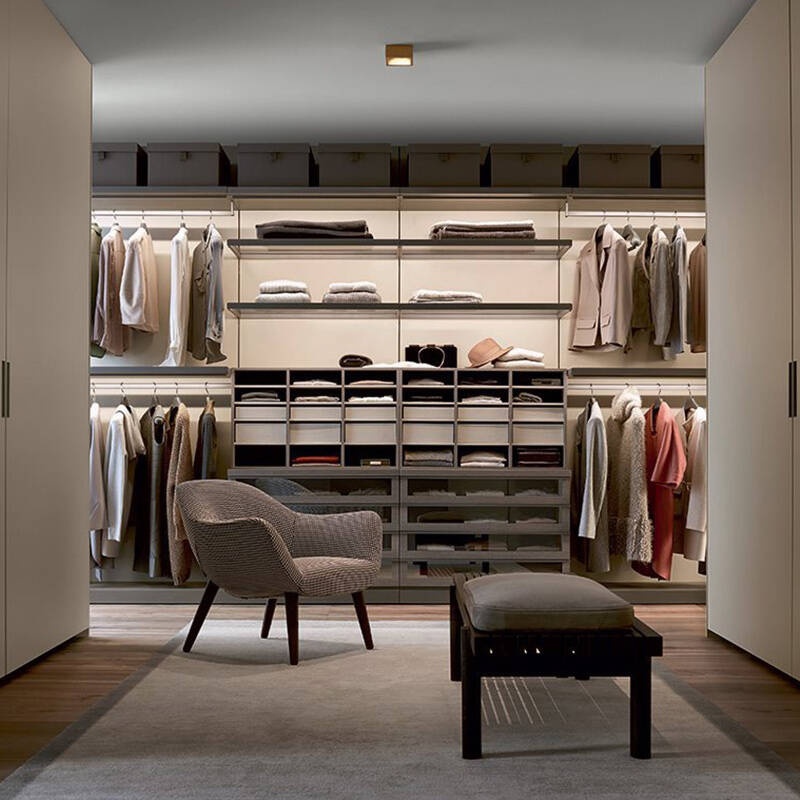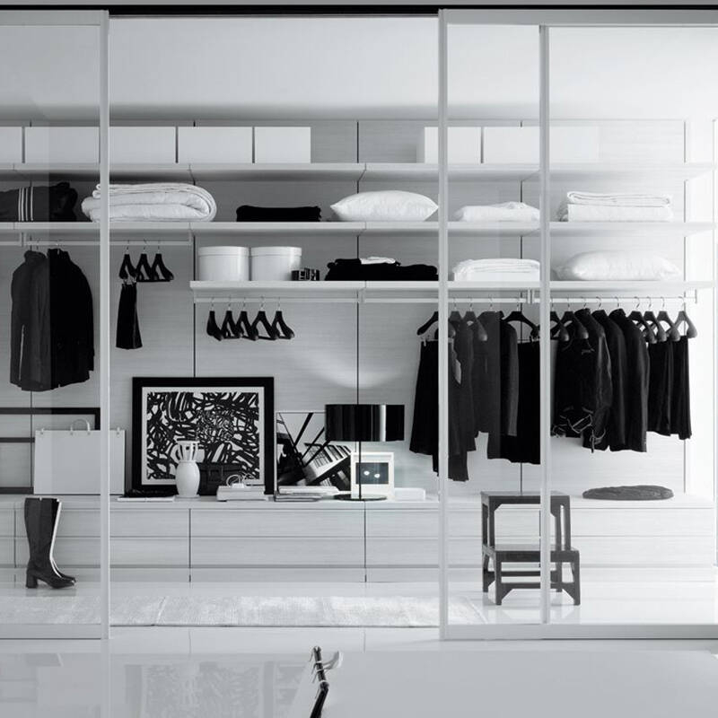 The Ubik system from Poliform offers advanced organisation of storage, with a series of elements and accessories dedicated to specific functions: trays, drawers with wooden or glass fronts, removable shoe racks, trouser racks, shirt racks. Poliform's Ubik system allows you to create a dressing design in which functionality and personal style coincide. Contact us for more information.