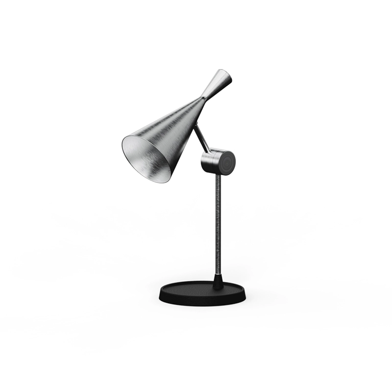 Produced by Tom Dixon , the Unbeaten table lamp is an evolution of the iconic Beat collection. While the Beat light focused on the exceptional and disappearing craft skills of Moradabad's metalworkers, the Unbeaten table lamp showcases hand-spun and brushed aluminium. Unbeaten is an elegant and refined table lamp that features thicker metal, superior lighting and electrical components, celebrating the raw state of aluminium and exposing its materiality in its naked form.