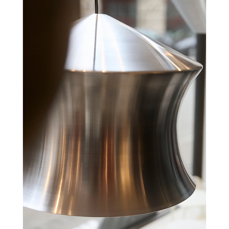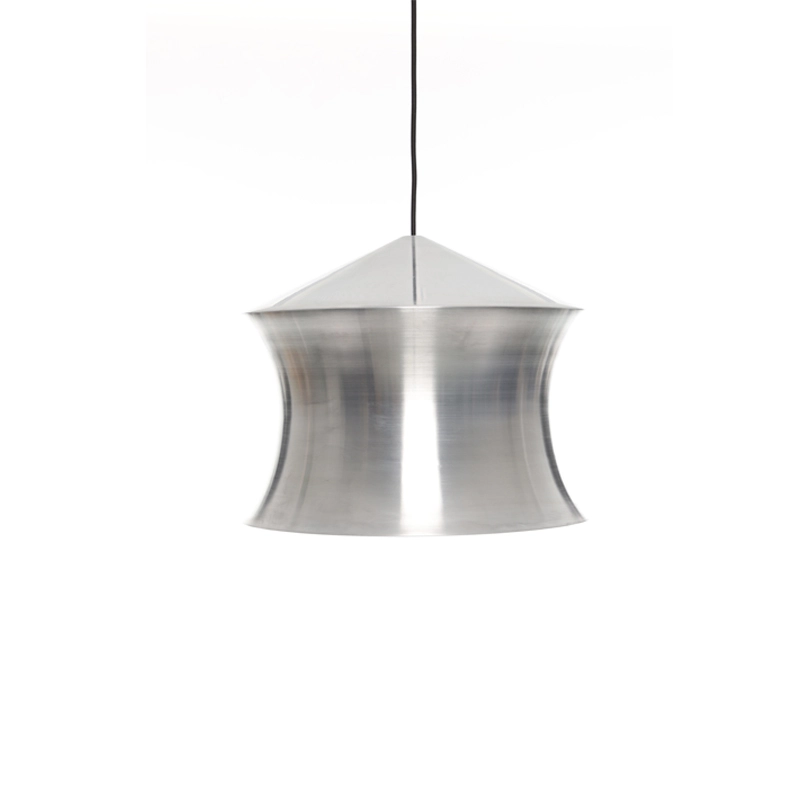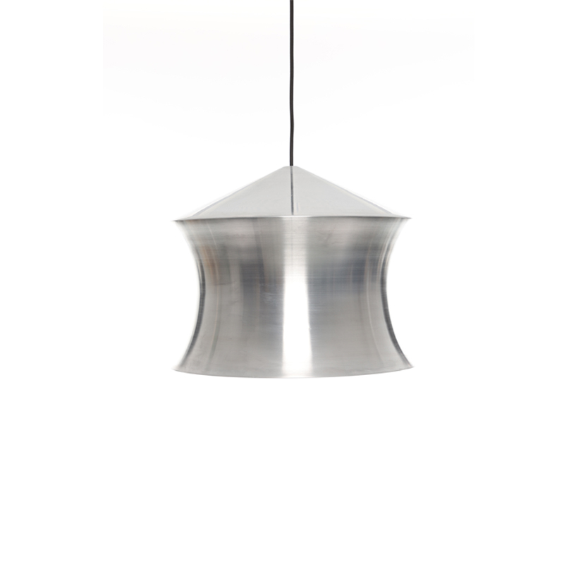 Produced by Tom Dixon, the Unbeaten Waist pendant is an evolution of the iconic Beat collection. While the Beat pendant focused on the exceptional and disappearing craft skills of Moradabad's metalworkers, the Unbeaten pendant showcases hand-spun and brushed aluminium. Unbeaten is an elegant and refined pendant that features thicker metal, superior lighting and electrical components, celebrating the raw state of aluminium and exposing its materiality in its naked form.