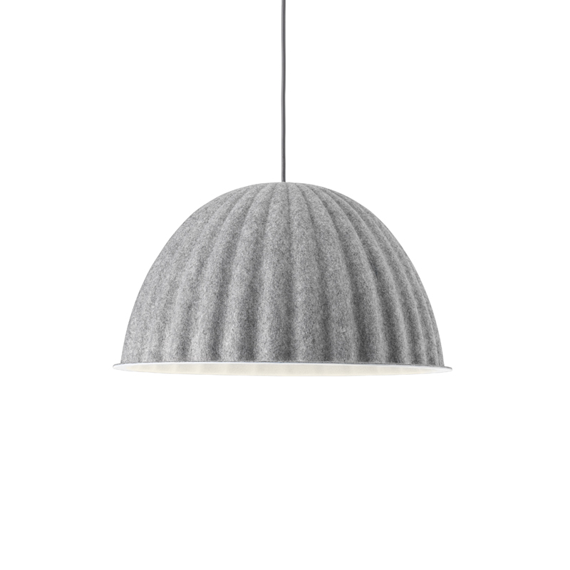 Under The Bell? "Under the Bell", is a suspension lamp of imposing dimensions, designed by Iskos Berlin for the publisher Muuto. This designer light fitting works equally well positioned close to the ceiling to illuminate the whole room or lower above a table. The moulded PET felt that forms the lampshade also enhances the room's acoustics. With this 55 diameter version, the Under The Bell suspension easily fits into smaller spaces, whether at home or in a professional environment.