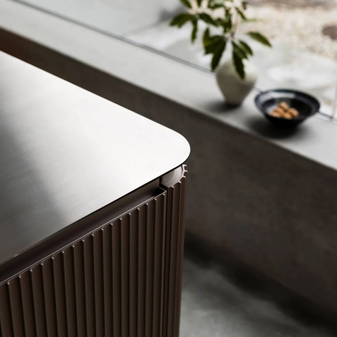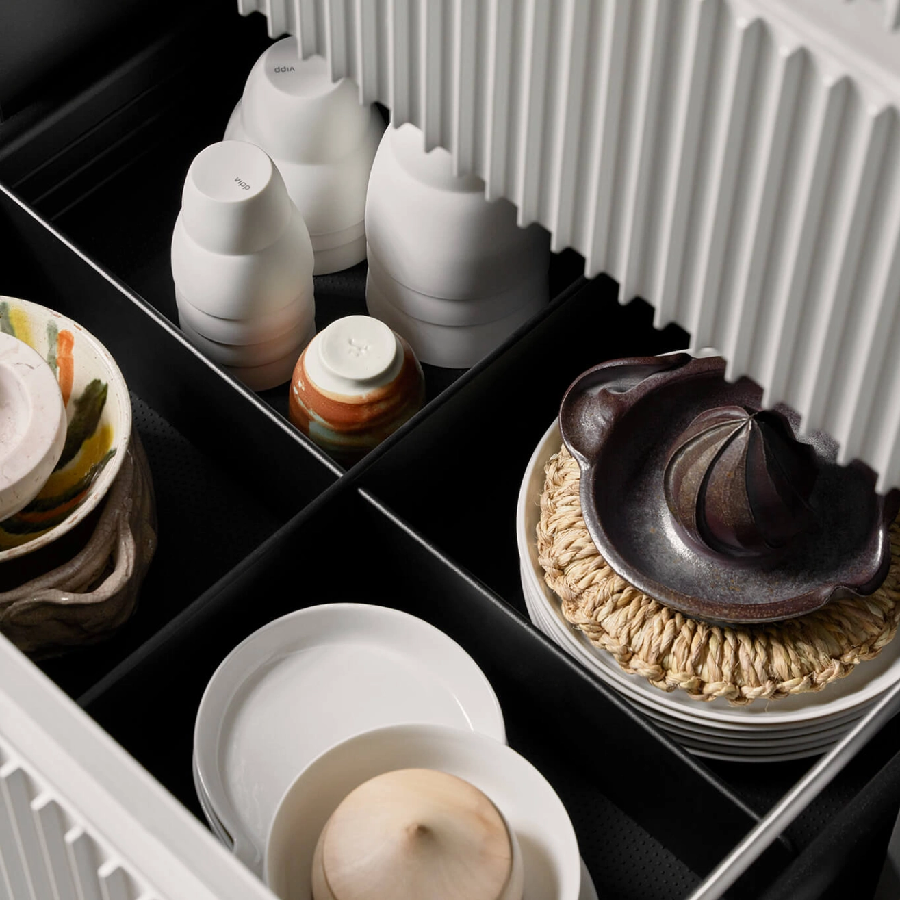 The Vipp V3 kitchen embodies the spirit of simplicity and durability that has characterized the brand since 1939. Designed to last a lifetime, every detail of this kitchen has been carefully considered and seamlessly integrated, combining functionality with timeless aesthetics. Far from fleeting trends, it stands out with its clean design and robustness, with particular attention to materials and finishes. The V3 is a modular kitchen model, offering total flexibility to adapt to different spaces and needs. Whether you choose an island kitchen, an island with a relaxation area, a wall unit, or a large storage column, each module is designed to optimize everyday use without compromising on quality. All of it, in an elegant finish that integrates perfectly into all types of modern interiors. Each module of the V3 is an invitation to rediscover the kitchen as a space for sharing, conviviality, and creativity. Its sober design, clean lines, and durable materials make this V3 kitchen an ideal choice for those seeking a functional storage solution and a pleasant workspace, while remaining true to the idea of a product that stands the test of time.