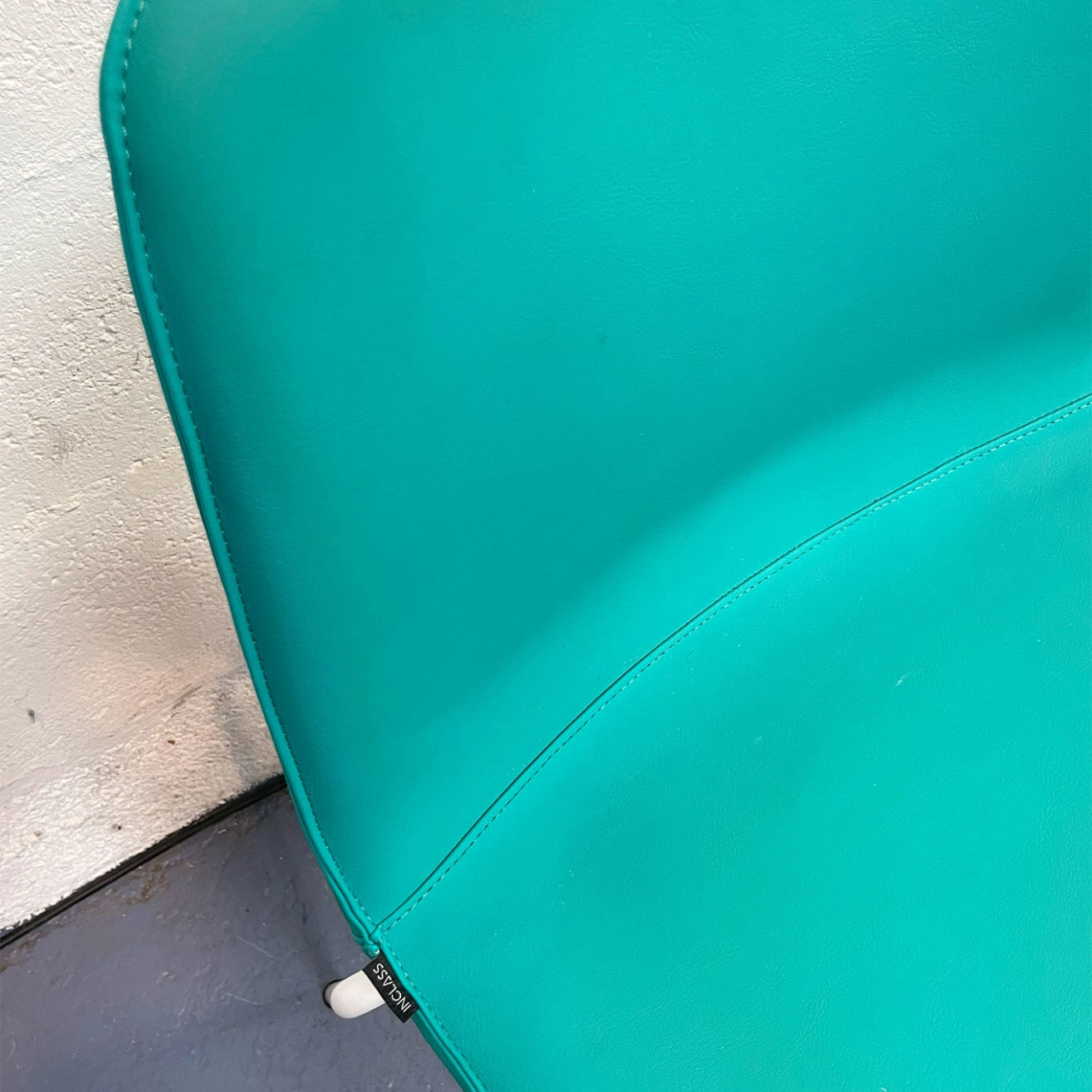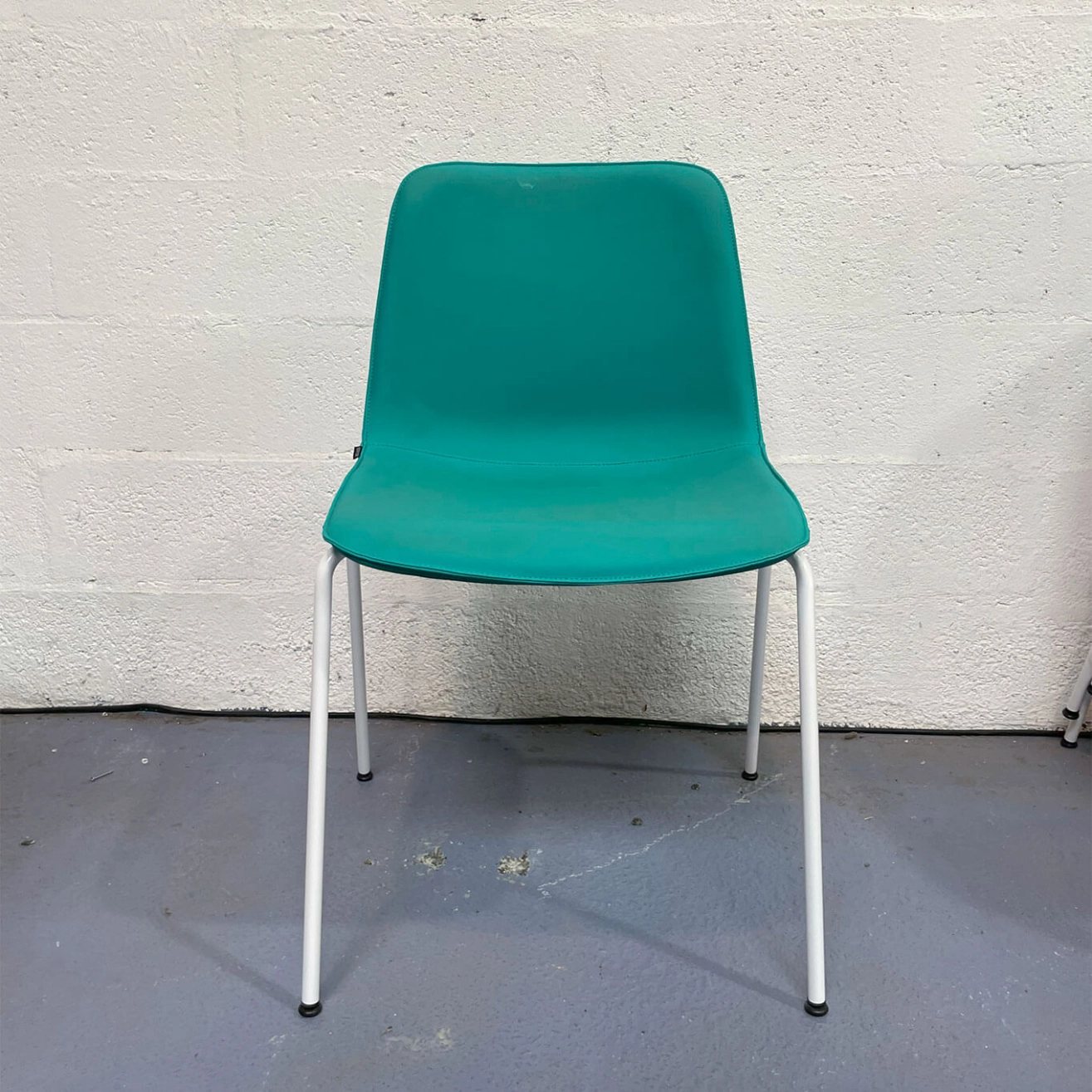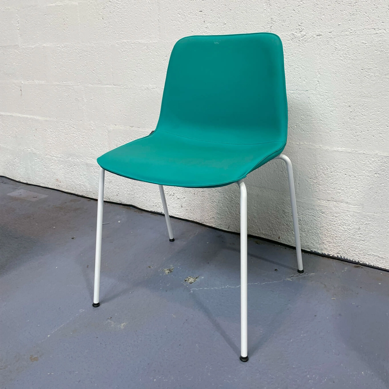 White metal frame and emerald green leather upholstery