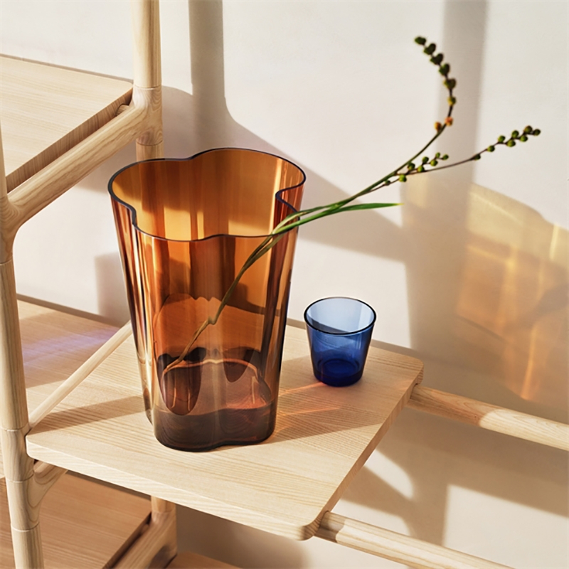 Alvar Aalto is one of the most important figures in 20th century design and architecture. He created his own style inspired by man and nature. Aalto believed that good design should be part of everyday life and, with this in mind, created products that had multiple uses, were sensitive and improved everyday life. He never indicated how his glass objects were to be used, wanting users to decide their purpose for themselves. The undulating, flowing, organic shapes of the objects in this collection evoke the thousands of lakes that punctuate Finnish landscapes. The glassblowers at manufacturer Iittala still handcraft these legendary vases of serene beauty. The Aalto vase is available in several heights and comes in a range of colours. Since its presentation in 1937 at the Paris Universal Exhibition, the Aalto collection has become a veritable masterpiece.