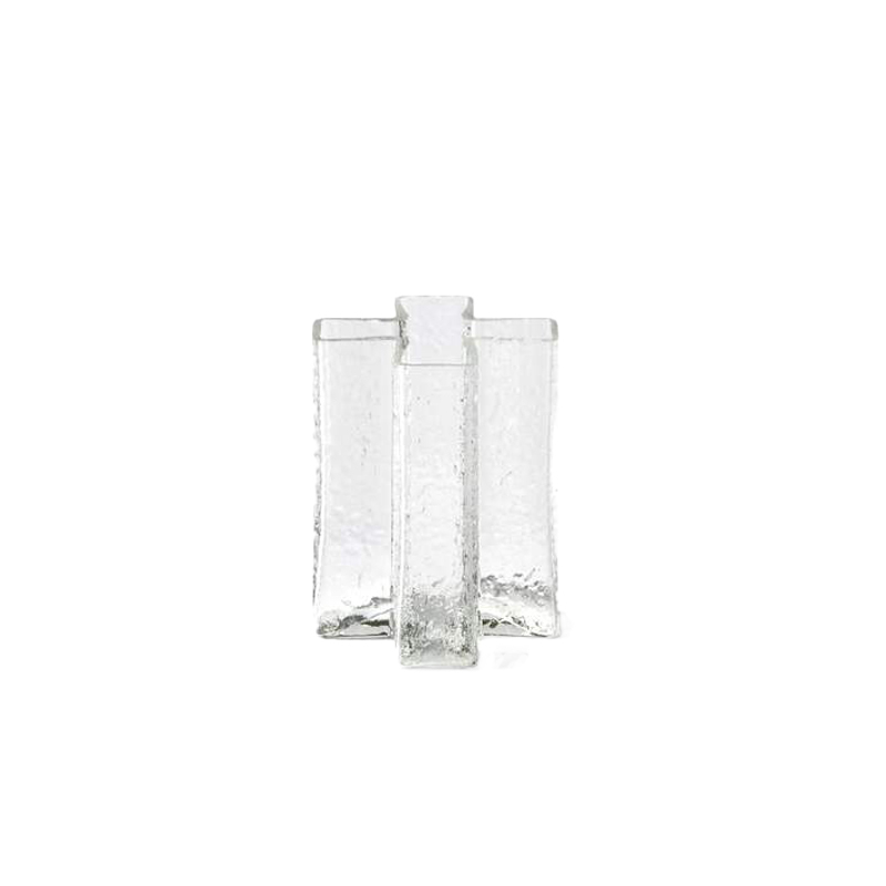 The Cross vases, created by Danish designer Bodil Kjær and published by Cassina, embody an inimitable aesthetic thanks to high-quality blown glass. The refined design of these cross-shaped vases offers four distinct spaces for holding flowers. Designed in the 1960s, the Cross vases by Cassina are designed to elegantly support flower stems, enhancing their beauty in a natural way. Available in three sizes (12, 23 and 27 cm), Cross vases are blown into cast-iron moulds, then delicately hammered, creating a surface unique to each piece. The Cross vases from Cassina a palette of three colours - extra clear glass, water blue and apple green - allowing you to choose according to individual preference. The ability to nest several vases together creates visually striking compositions, highlighting the uniqueness of each piece.