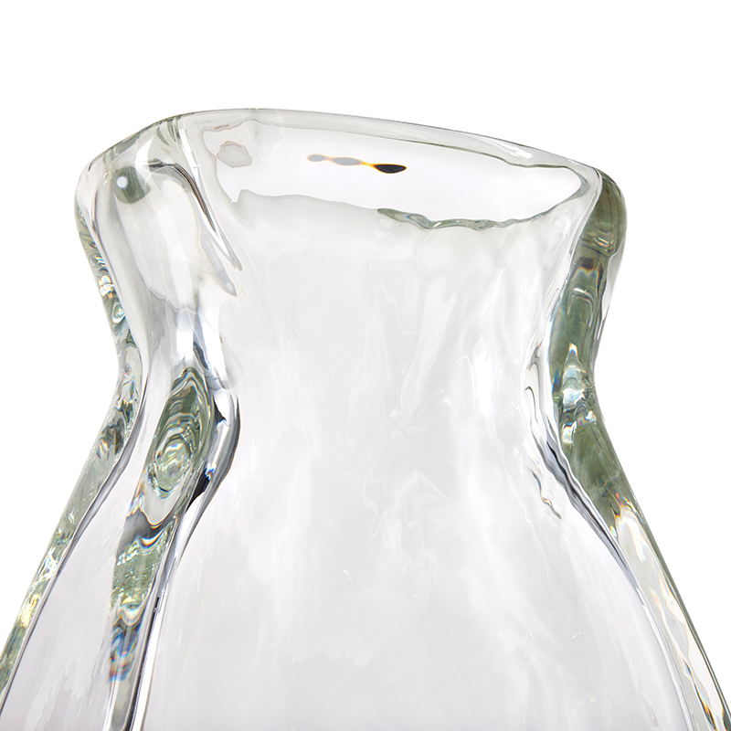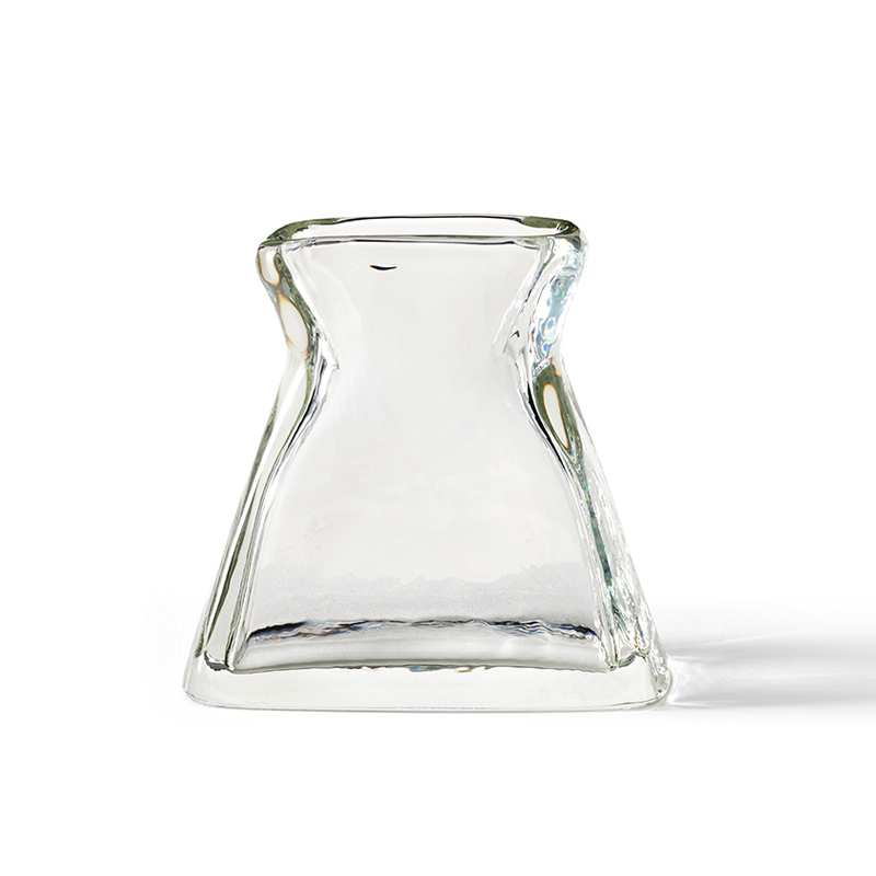 Designed by Charlotte Perriand in 1940 while she was in Japan, the Echancré vase is inspired by traditional oriental craftsmanship. Échancré is a sculptural creation in glass blown into a mould and reworked by hand, a process that makes each copy unique and non-reproducible. The deliberately irregular shape, the soft texture of the surface and the thick, rounded edge underline the materiality of the object.