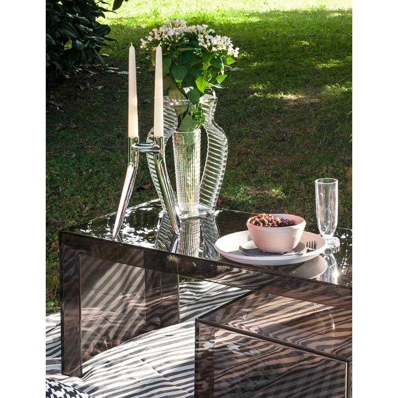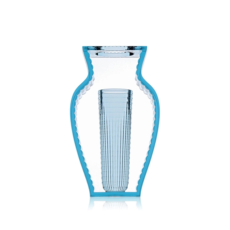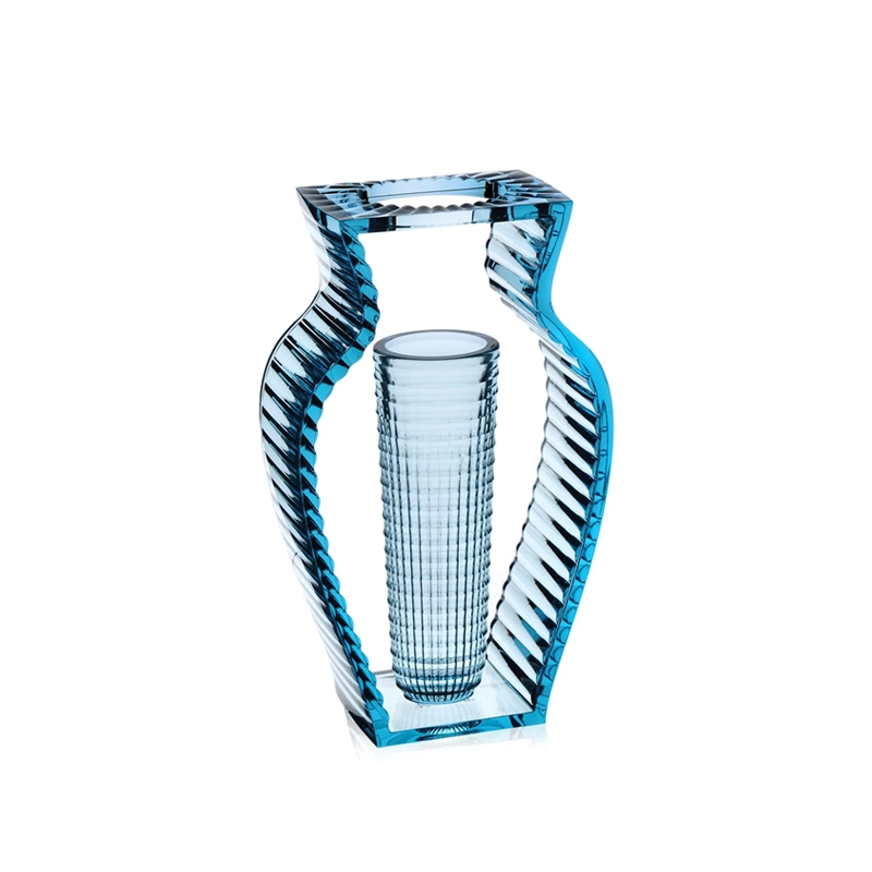 The I Shine vase was designed by Catalan designer Eugeni Quittlet for the Kartell brand. This sculptural object is distinguished by its transparent PMMA structure, which reproduces the appearance of light-catching crystal. Its geometric shapes play with fullness and emptiness to create a light, refined silhouette. The I Shine vase is available in a range of colours to match your interior perfectly.
