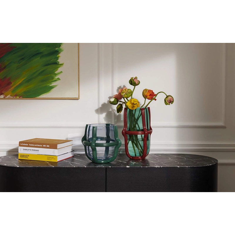 Sestiere vases perfectly combine contemporary design with the age-old craft techniques of Murano glasswork. Thought up by designer Patricia Urquiola for Cassina, these colourful vases are designed with a sphere of blown glass almost imprisoned in a latticework of strings. These strings, also known as "morisa", are delicately laid by hand on the outside of the vase and are decorated with the striped "rigadin" motif typical of the Muranese tradition. The bright colours of tradition meet a sleek, precise and graphic design. The vases Sestiere perpetuates traditional glass craftsmanship while bringing a contemporary interpretation, paying a vibrant tribute to Venice. The name of the collection refers to the six districts that make up the city. Each vase is authenticated by the Cassina logo sandblasted onto the bottom of its base. The Sestiere vase collection harmoniously combines the two aesthetic languages of glass and rope, creating unique pieces of great beauty, a testament to the skill and passion of Murano's craftsmen.