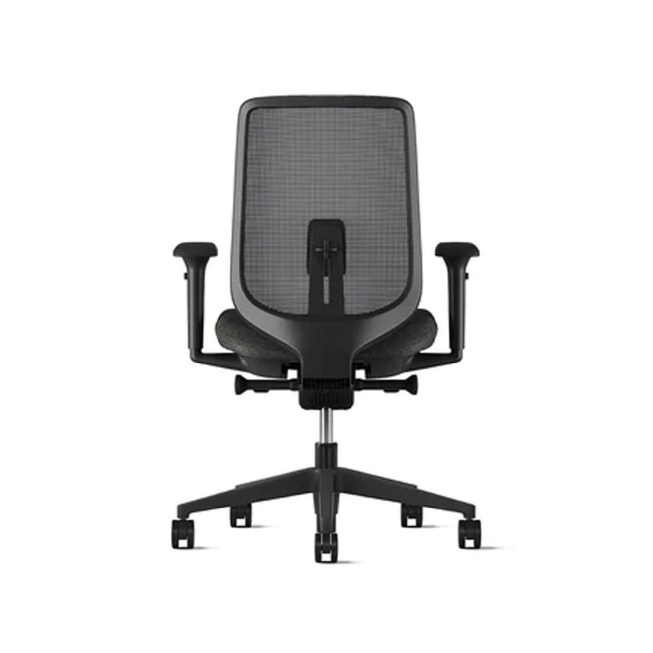 The Verus Suspension office chair in Shale/0783 finish, designed by Yves Béhar and produced by Herman Miller, combines ergonomic performance and functional design in an accessible format. Built to deliver reliable support throughout the day, Verus features a breathable suspension back that flexes with your movements, along with an adjustable seat depth and a synchronous tilt mechanism with tilt limiter and forward tilt option. Fully adjustable armrests, a black chassis with standard base, and casters suitable for both hard floors and carpets make this chair a complete ergonomic solution without compromising aesthetics. Clean and versatile, the Verus Suspension office chair meets the demands of modern workspaces while embracing the sustainable design values championed by Herman Miller.